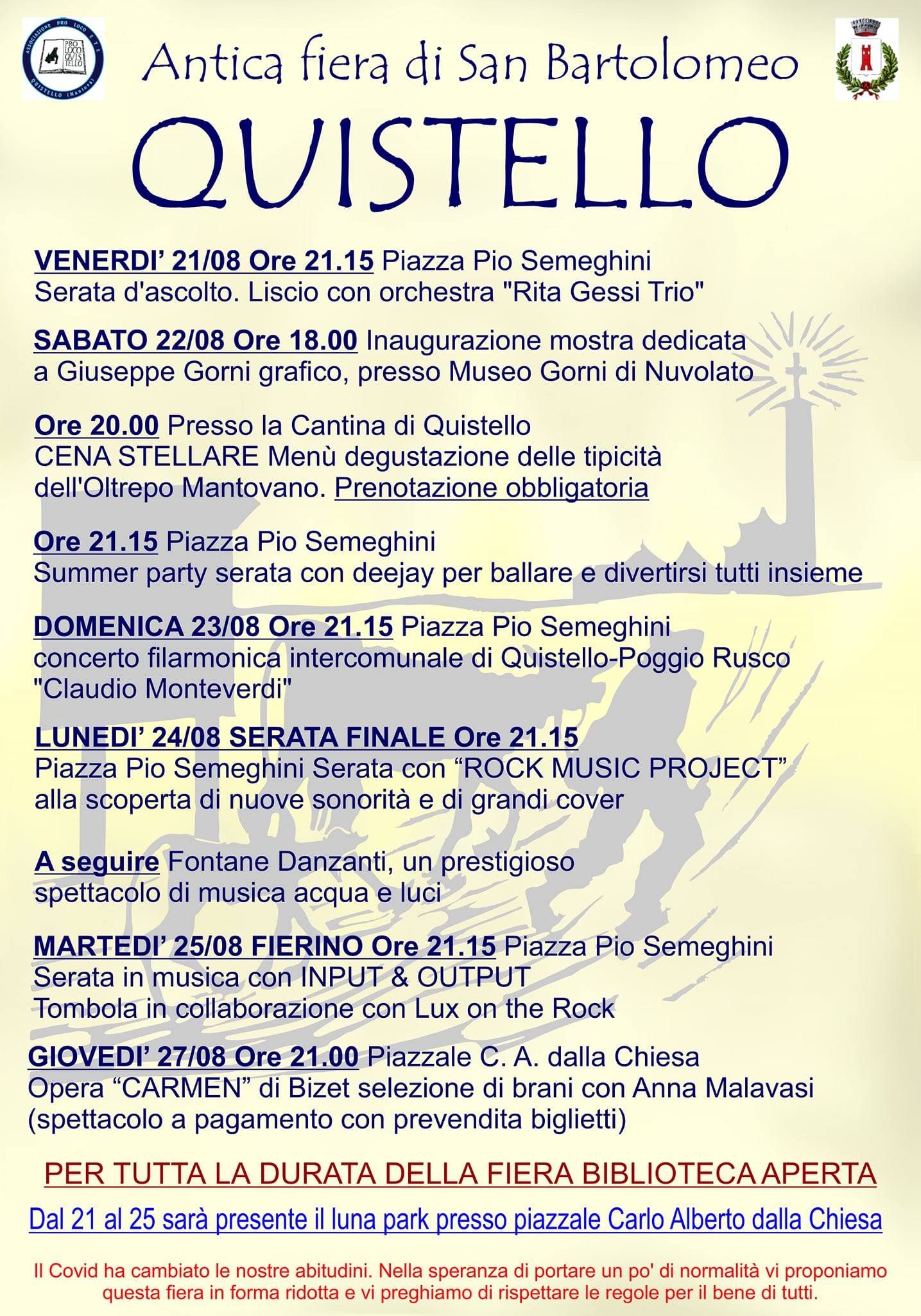 QUISTELLO – E’ partita venerdì e proseguirà fino a giovedì 27 agosto la tradizionale Fiera di San Bartolomeo.