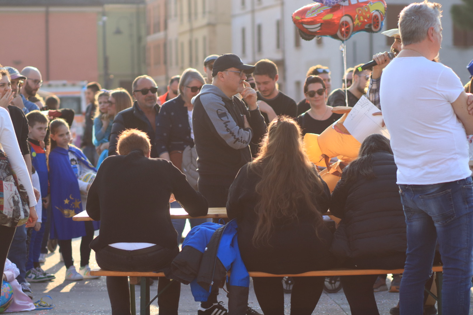 VILLIMPENTA – Ieri a Villimpenta è stata una festa di Carnevale all’insegna del divertimento e della goliardia. Un evento che ha riunito nella piazza del paese, giovani e adulti, come sempre. Il pomeriggio di sole e il primo caldo a ridosso della primavera hanno reso il tutto più gradevole e festoso. Evento riuscito nonostante il rinvio a causa del maltempo dello scorso 2 marzo. Silata dei carri, maschere di ogni tipo originali e simpatiche, ma non solo. Musica protagonista con Dj Vittorio Cavallini di Radio Pico che ha fatto scatenare tutta la piazza con le hit del momento. Bene le maschere, bene i carri, ma l’attesa era tutta per l’elezione a Re del risotto, ovvero colui che riesce a finire una porzione da 21 once di risotto nel minor tempo possibile. Bene il Re non ha abdicato, il trono è ancora saldamente nelle mani di Valentino Milani