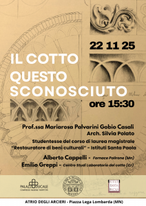 Particolare attenzione sarà dedicata al tema del “cotto nell’architettura”, materiale identitario della cultura costruttiva mantovana, impiegato per elementi decorativi, cornici, modanature e fregi, con le sue sfumature naturali e la forte integrazione nel paesaggio locale. Gli esperti illustreranno inoltre le fasi di lavorazione dell’argilla – dalla modellazione alla cottura, fino alla varietà dei prodotti e al loro commercio.