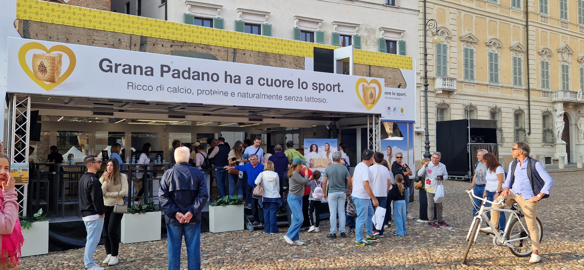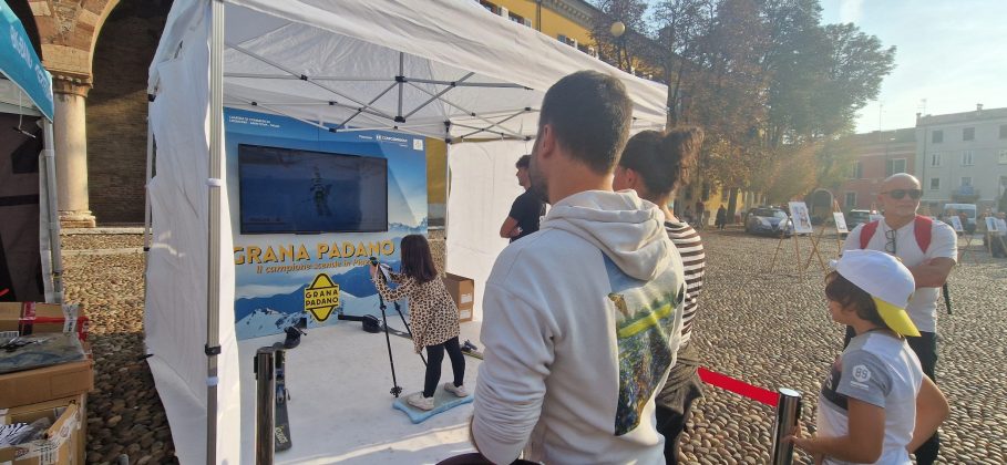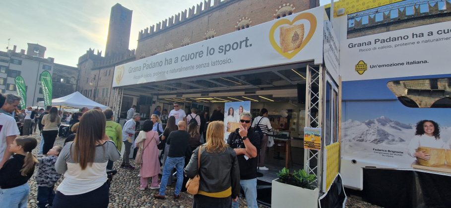 MANTOVA – Formaggio e sport insieme: è l’evento “Grana Padano, il campione scende in piazza” che si è svolto oggi in piazza Sordello per celebrare il fatto che il Consorzio Grana Padano sia sponsor ufficiale delle prossime Olimpiadi Milano-Cortina 2026. Ecco allora la postazione di basket, quella di sci o di arrampicata, musica, degustazioni guidate. Una giornata-evento di gioco e formazione per grandi e piccini.