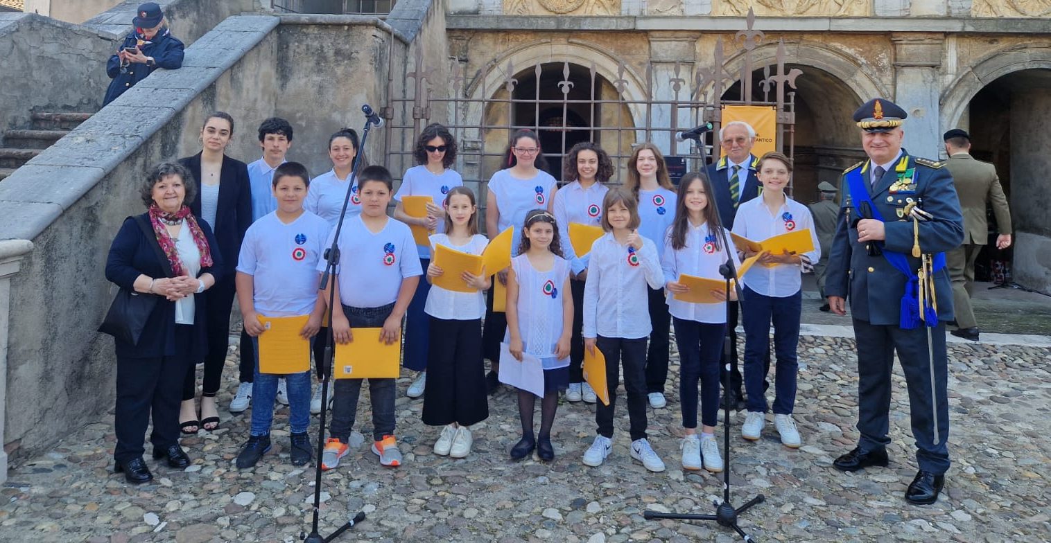 MANTOVA – Un 2 giugno, Festa della Repubblica, nel segno dei ragazzi e della musica, quello preparato quest’anno dalla Prefettura di Mantova. Un lungo corteo (con in testa il Sindaco Mattia Palazzi, il vicepresidente della Provincia Massimiliano Gazzani e altri primi cittadini e autorità politiche, civili e militari), che si è snodato da piazza Sordello, sino al Famedio ai Caduti è stato protagonista della “Sfilata del tricolore”. I ragazzi della Sacchi’s Marching Band dell’I.C. Mantova 2 hanno accompagnato con brani musicali il corteo. Al Famedio poi, è stata la volta del coro “Voci in Festa Città di Mantova” dell’Associazione Culturale Pomponazzo, che al Famedio ha intonato l’Inno d’Italia, “La Leggenda del Piave” e altri brani come “La bandiera dei tre colori” e “2 giugno ’46”. A seguire, poi in Prefettura, c’è stata la consegna delle onorificenze (elenco completo dei premiati in fondo all’articolo) da parte del Prefetto Gerlando Iorio.