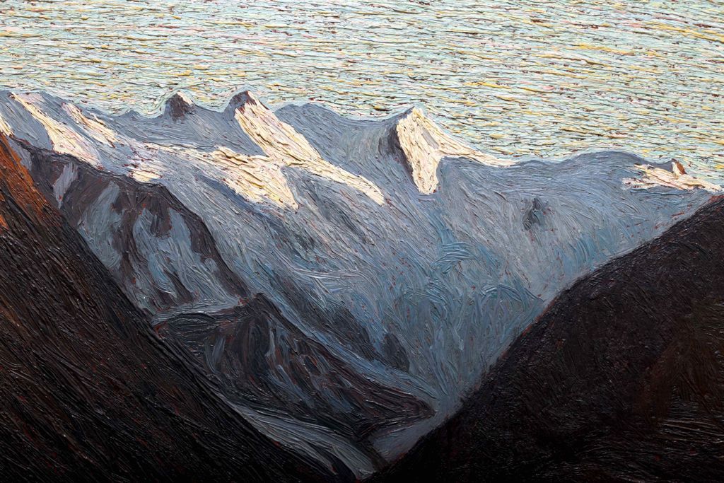 “Le opere che la rassegna presenta sono esemplificative della dimensione artistica di Archimede. Dipinti come il Ritratto di Lucia Nodari Pesenti (1904) a testimonianza tra l’altro del legame con Domenico Pesenti di cui era l’artista prediletto, Sera d’inverno, (1910), come il Bernina (1915), come Alba Luminosa (1918), apriranno la strada a un percorso ricco, completo e rigoroso: dalle prove giovanili, cariche di riferimenti segantiniani, legate ai confronti con l’ambiente della tarda scapigliatura, passando attraverso la forza dirompente del linguaggio divisionista – quando elaborava una visione idilliaca del paesaggio alpino – si arriva alla svolta degli anni Venti, allorché, conosciuto il gruppo di Novecento Italiano, Archimede abbandona lentamente le sue attitudini tardo ottocentesche. Quindi, con il ripudio degli ‘ismi’ d’importazione straniera, ecco la partecipazione dell’artista al progetto collettivo di una declinazione pittorica italica e, nei dipinti degli anni Trenta, analogamente alla posizione espressa dalle nuove generazioni, ecco invece la sperimentazione, da parte di Archimede, di una sorta di antinovecento, con una tavolozza che ora riluce di toni più chiari, più lievi e delicati” spiega Ferlisi.