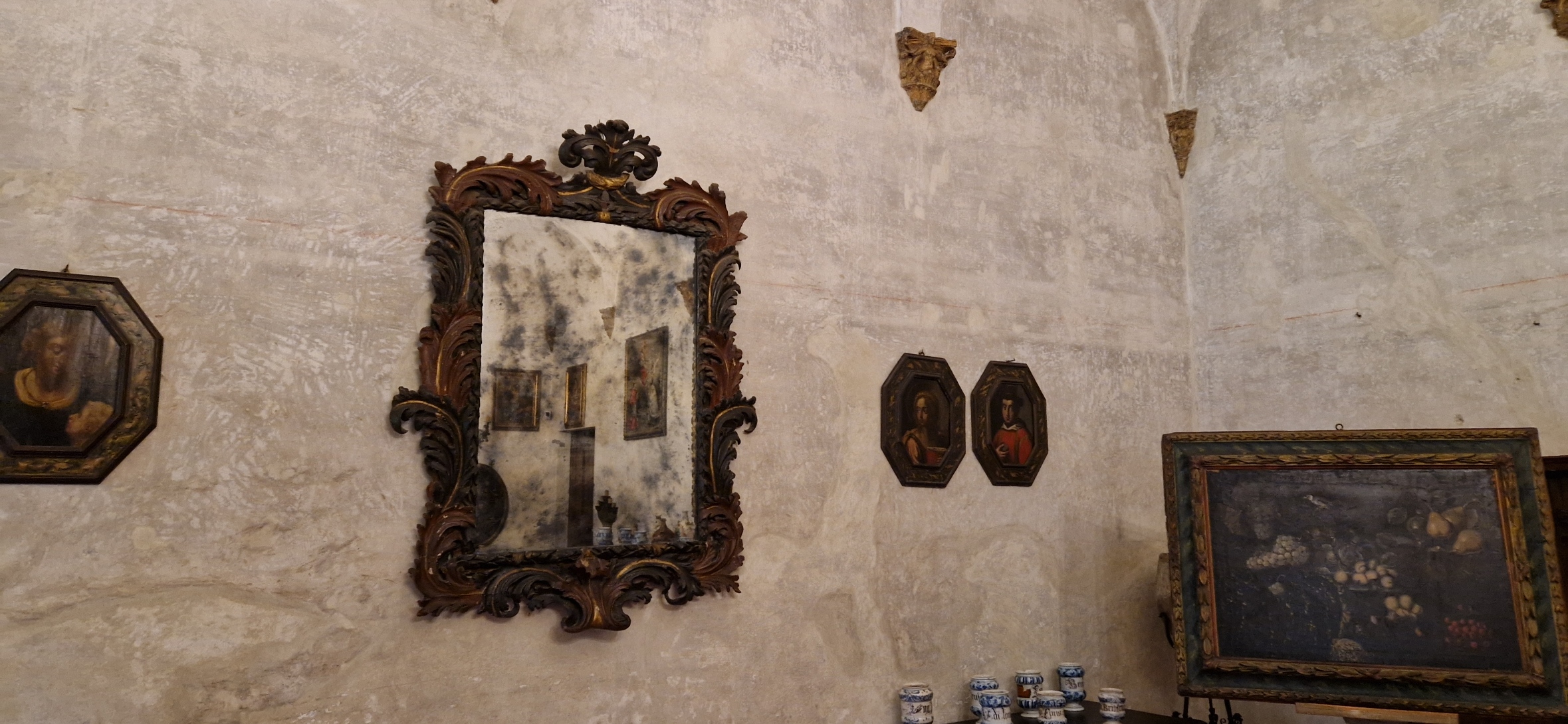 “E’ una specchiera mantovana della seconda metà del 1600 – spiega sempre Scaietta, nella veste anche di presidente degli “Amici di Palazzo Te” – donata dalla famiglia Zacchia, famiglia di antiquari, che ne è proprietaria dai primi del 1900. Il signor Zacchia, erede della famiglia, ha deciso di donarla agli Amici di Palazzo Te, e io, visto che ricopro questa doppia veste, ho pensato che il luogo ideale per ospitarla e valorizzarla sarebbe stato Palazzo D’Arco”.