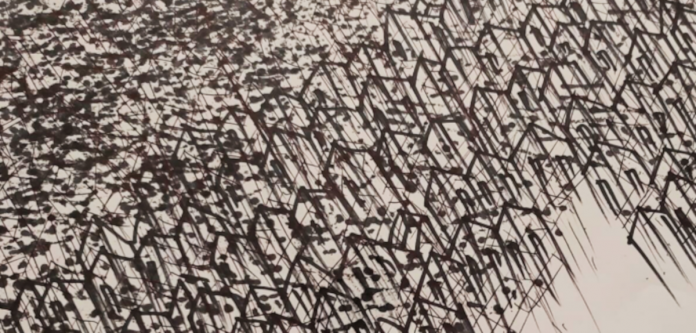 Le opere, realizzate con materiali di recupero – cartoni, imballaggi, sacchetti di plastica – trasformano oggetti destinati allo scarto in universi visivi complessi. Le linee in pennarello generano architetture immaginarie, prospettive volutamente distorte e microcosmi urbani che intrecciano memoria e immaginazione.