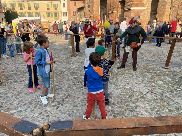 Il momento più emozionante è arrivato quando, al termine del “combattimento”, i piccoli partecipanti si sono inginocchiati davanti al Signore del castello per ricevere la nomina a cavaliere. Un gesto simbolico che ha fatto brillare gli occhi e riempito d’orgoglio i bimbi protagonisti di questa avventura. Tra dame eleganti, armigeri, popolani e giullari, la piazza si è trasformata in un grande mercato didattico-espositivo dove è stato possibile scoprire usi, costumi e tradizioni medievali, grazie alla presenza di decine di rievocatori storici provenienti da diverse regioni.