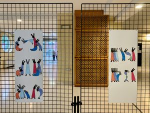 Testi oggi ha concluso il suo percorso riabilitativo e presenta questa serie di opere per raccontare una storia di incontri e di rinascite. Questi conigli marciano elegantemente su uno sfondo bianco, etereo. Un ambiente rarefatto che mette in luce le cose veramente essenziali della vita, evitando inutili distrazioni. I soggetti si distinguono per i colori e nei loro contrasti riescono a delineare una profondità spaziale, nel loro procedere da sinistra a destra c’è un’animazione che cattura gli istanti precisi di un movimento di corpi bidimensionali che si struttura in composizioni classiche per le pose dei personaggi.