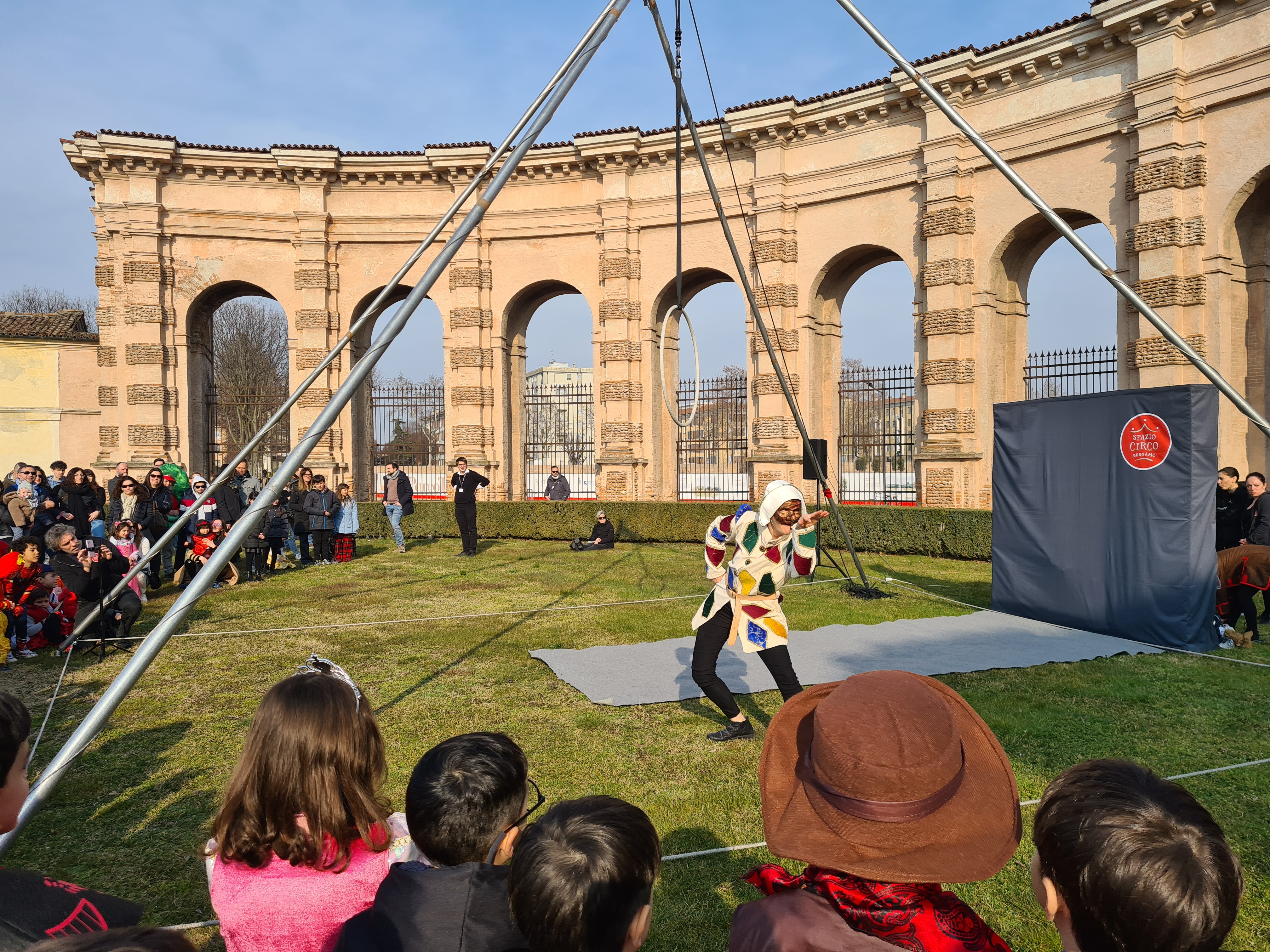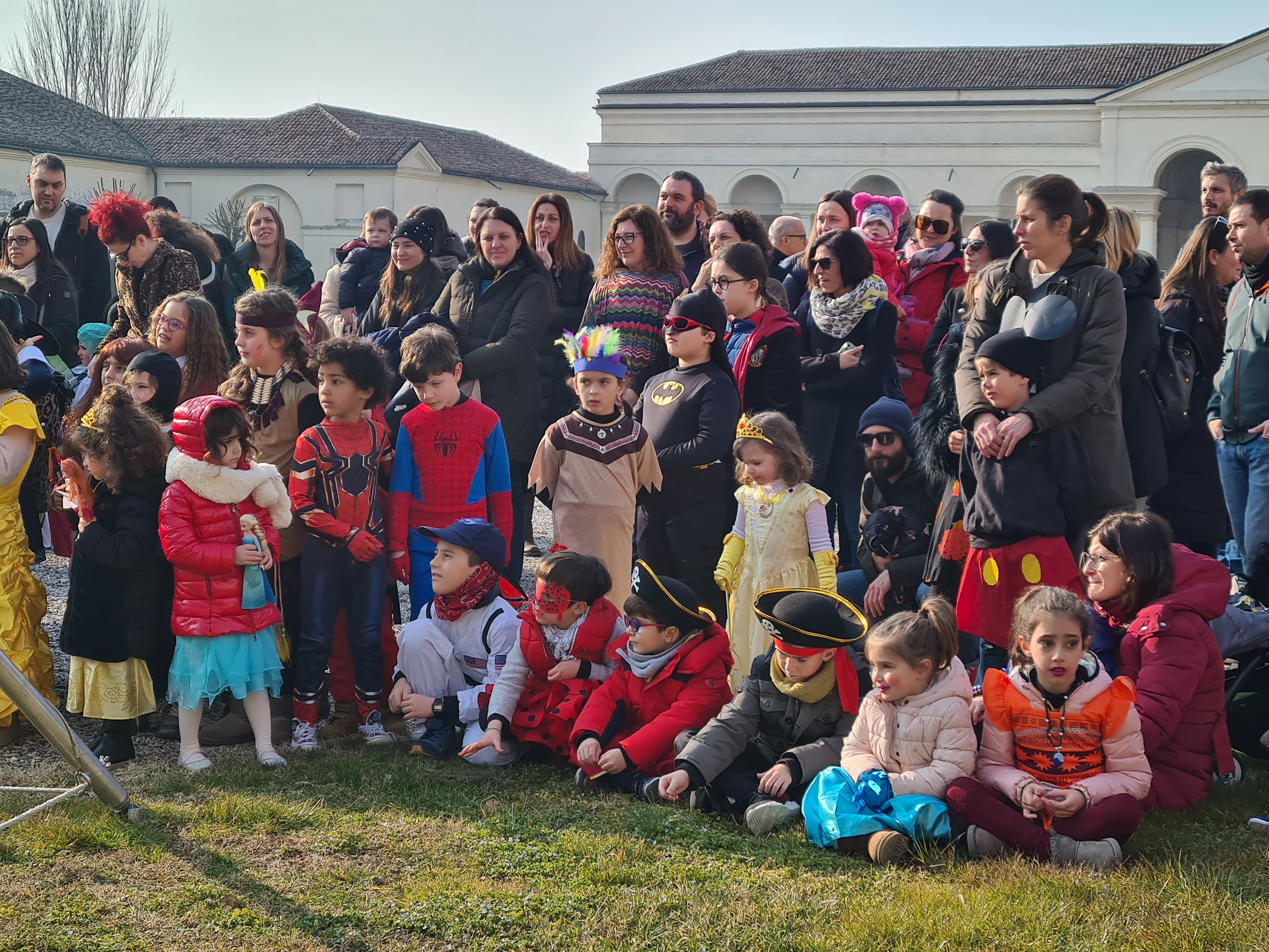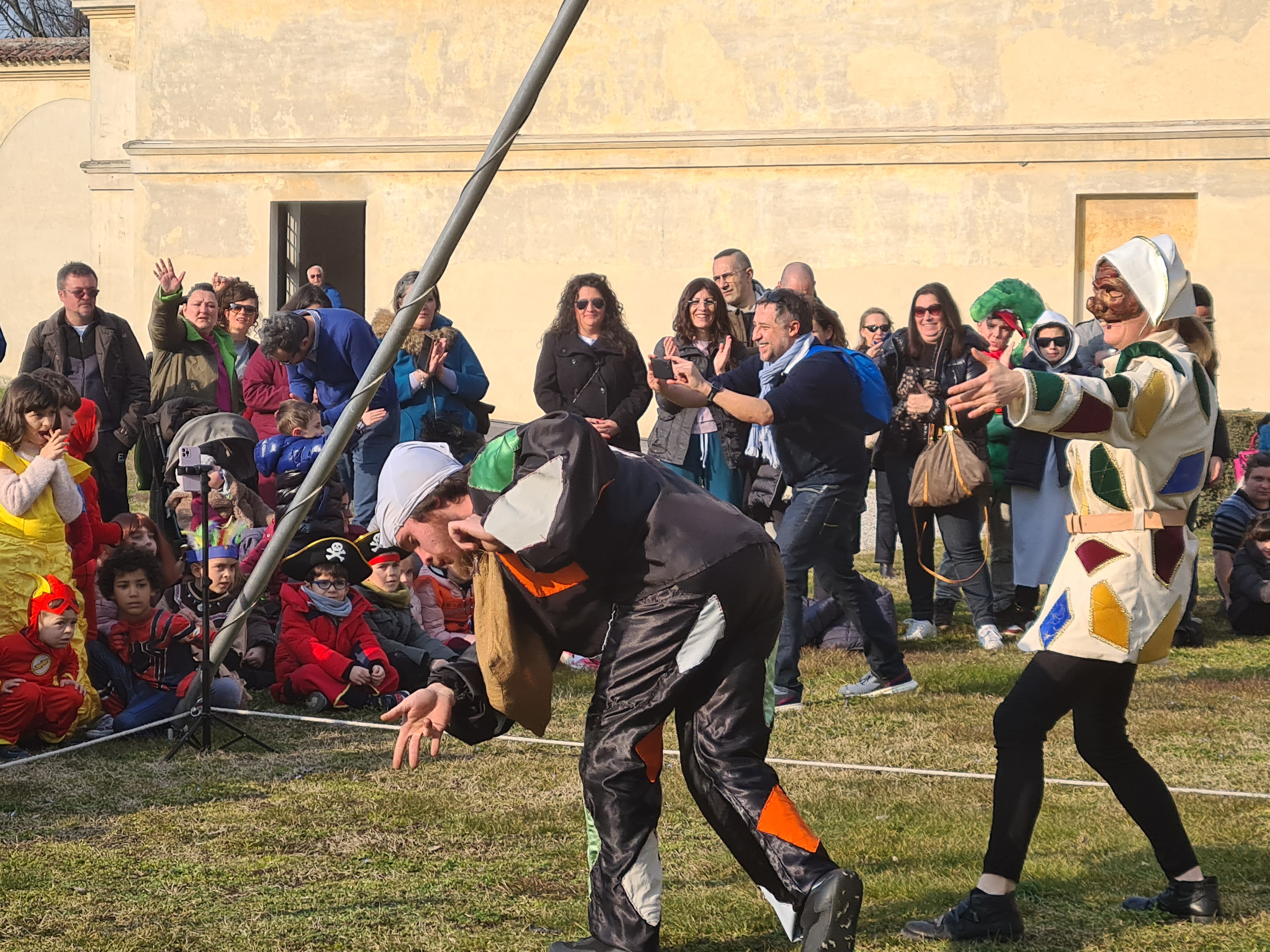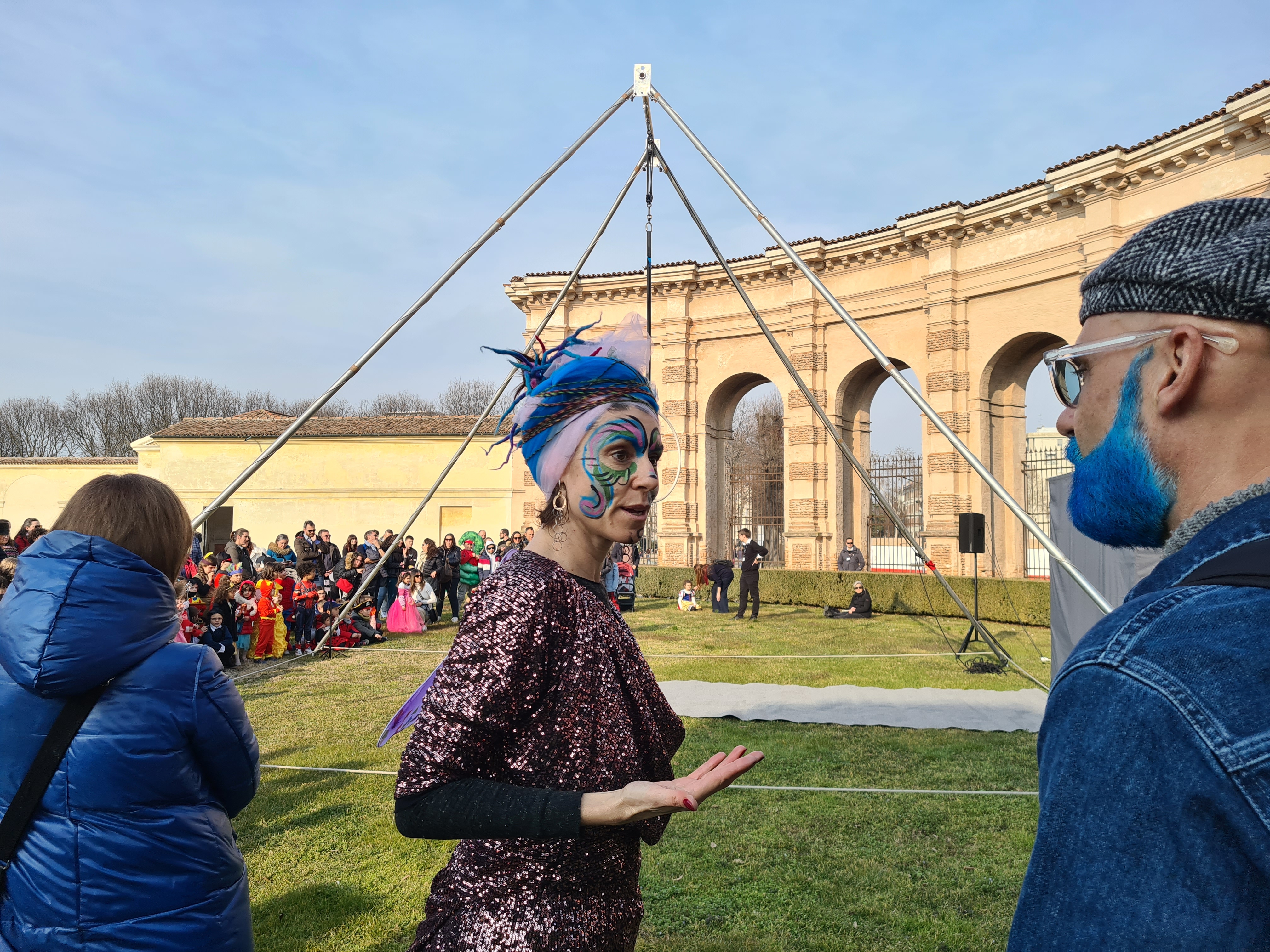 MANTOVA – Un carnevale a regola d’arte oggi a Palazzo Te: balli, spettacoli di circo aereo, letture fantastiche e tanto divertimento per i bambini che hanno invaso la corte gonzaghesca colorandola con i vestiti stravaganti e quelli della tradizione. Il più gettonato tra i bimbi, ma anche tra gli adulti è quello di Mercoledì Addams.