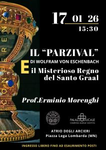 Ad aprire il programma sarà la conferenza «Il “Parzival” di Wolfram von Eschenbach e il misterioso regno del Santo Graal», in programma sabato 17 gennaio, a Palazzo Ducale, a cura del professor Erminio Morenghi.