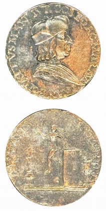 Particolari del palazzo e la medaglia di Francesco Bonatti