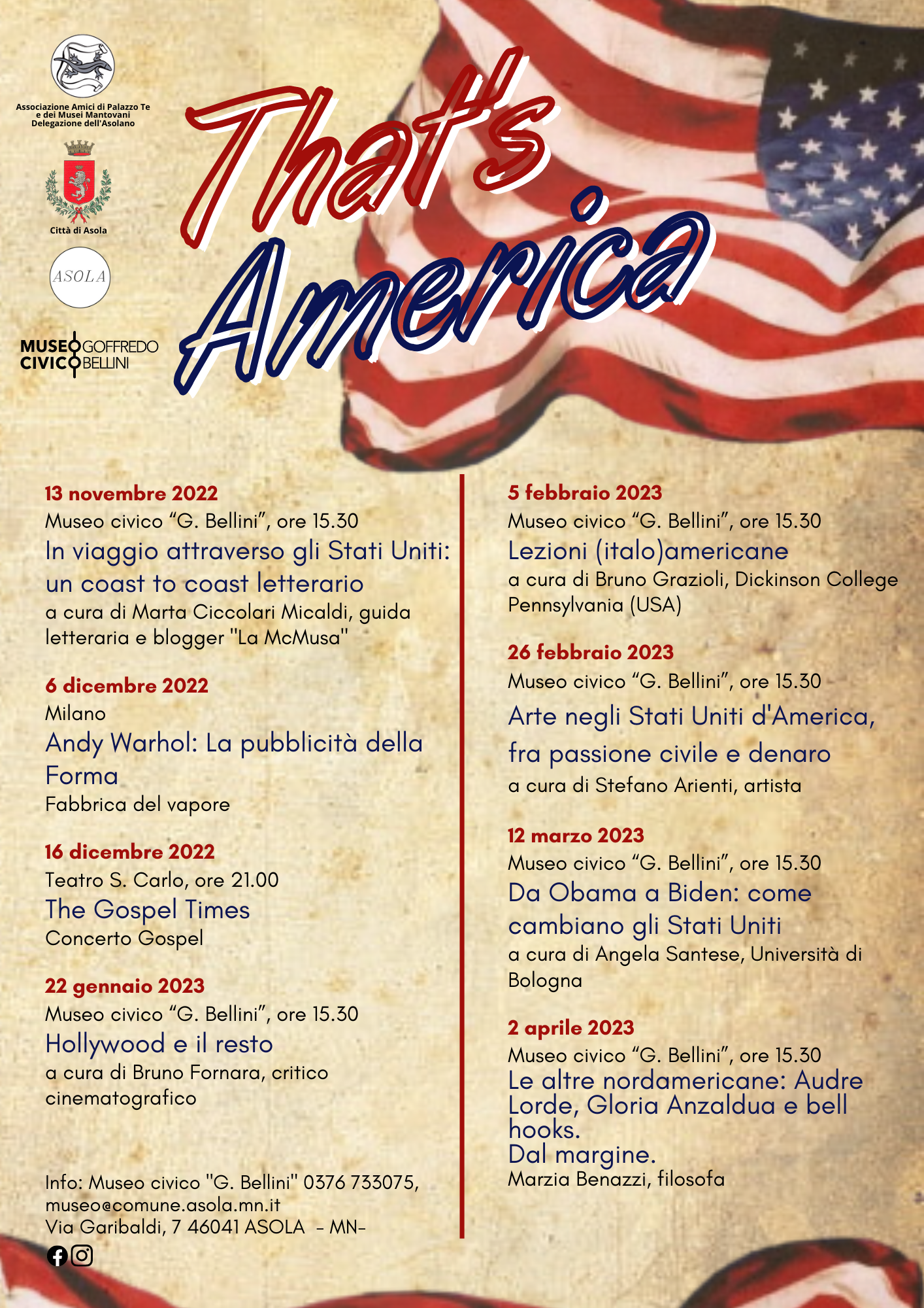 La rassegna è realizzata in collaborazione con l’ass.ne Amici di Palazzo Te , delegazione dell’Asolano. La rassegna è ad ingresso libero e gratuito.