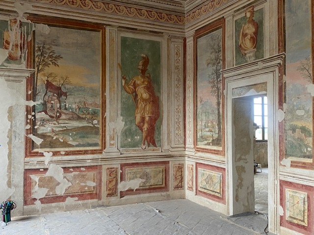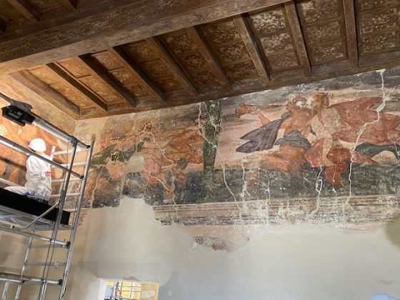 PEGOGNAGA – Gli splendidi affreschi si svelano uno ad uno mentre quelli dove ancora i restauratori sono all’opera si riappropriano dei loro colori originari e della loro straordinaria luminosità. È quanto sta accadendo in queste settimane a Villa Galvagnina, storica dimora immersa nella campagna tra Pegognaga e Moglia, dove proseguono a ritmo serrato i lavori di recupero iniziati nel gennaio 2024 e ormai vicini alla fase conclusiva.