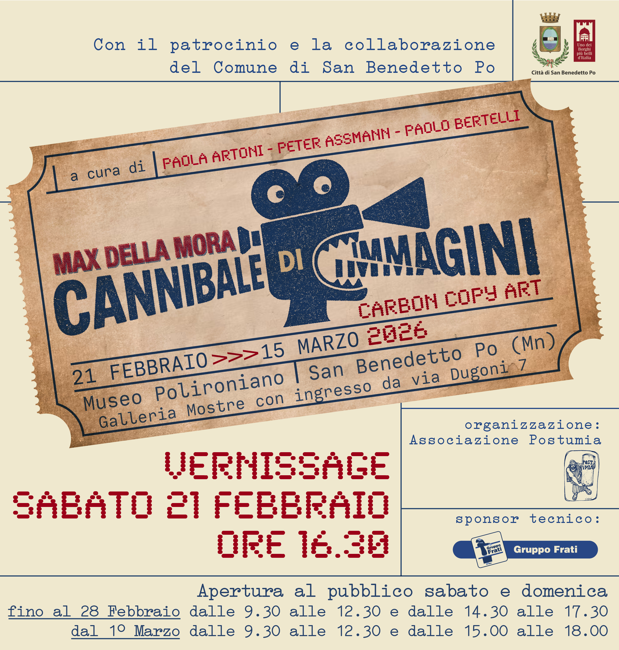 La mostra, organizzata dall’Associazione Postumia con il patrocinio e la collaborazione del Comune di San Benedetto Po e il supporto tecnico del Gruppo Frati Spa, sarà inaugurata sabato 21 febbraio alle 16.30.