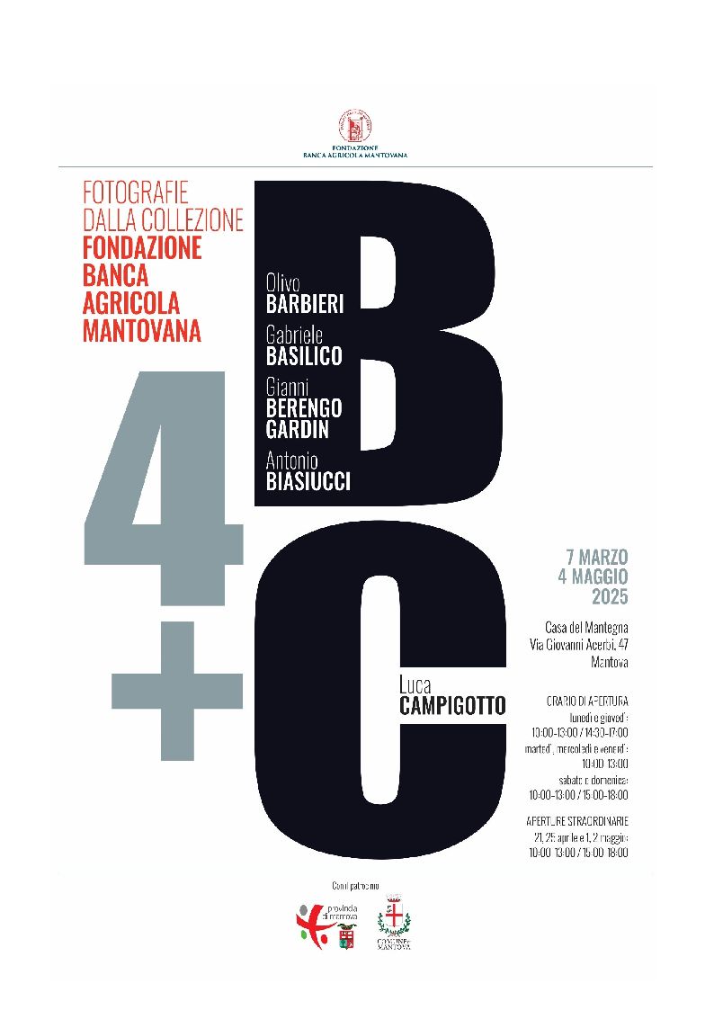 La Fondazione Banca Agricola Mantovana, nata nel 2000, si impegna da sempre a promuovere il progresso culturale e sociale di Mantova. Ne valorizza il patrimonio artistico, storico e culturale della città, sostenendo la ricerca scientifica e intervenendo in campo sociale. La sua collezione di opere d’arte, che include numerose fotografie contemporanee, si arricchisce ogni anno di nuove acquisizioni, e lo sguardo fotografico sulla Mantova di oggi arricchisce il suo impegno nella valorizzazione del territorio.