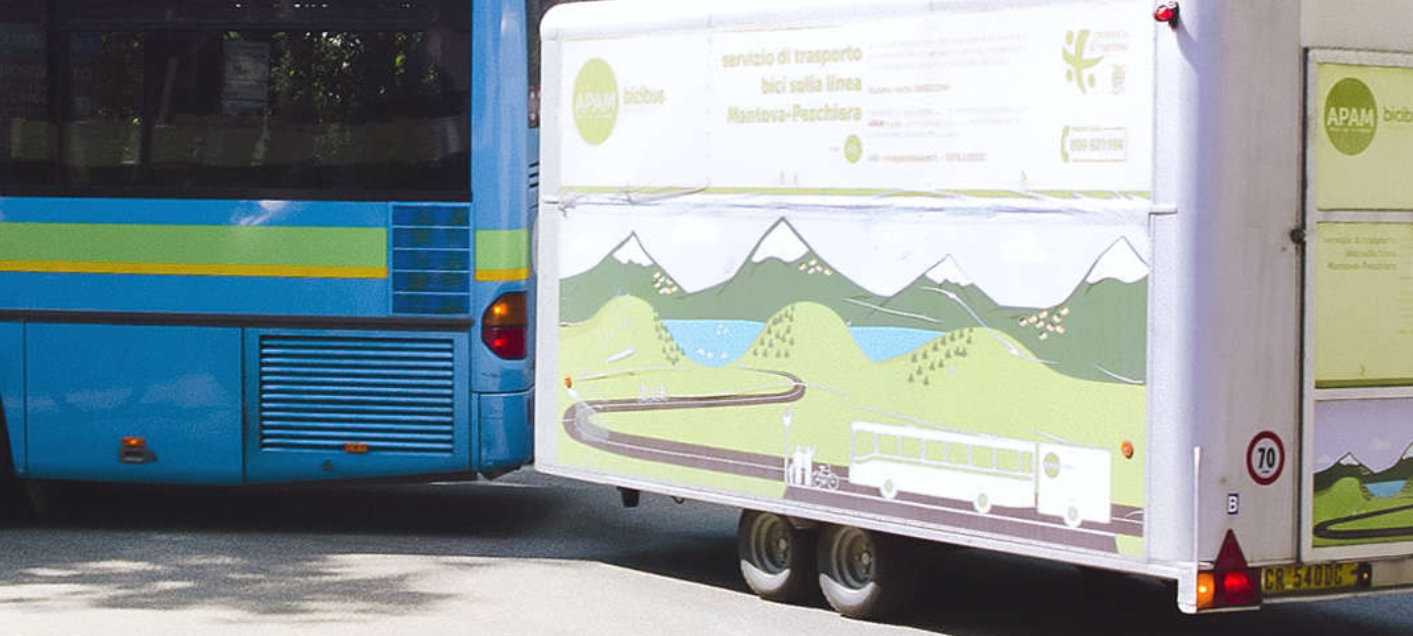 Il servizio di trasporto biciclette viene effettuato tramite un carrello agganciato all’autobus che serve la linea 46 che collega Mantova, Pozzolo, Valeggio sul Mincio e Peschiera del Garda. Il servizio Bicibus permette di trasportare sul carrello fino a 35 biciclette dal peso massimo di 20 kg ed è possibile prenotare le corse disponibili tutte le domeniche e i giorni festivi.