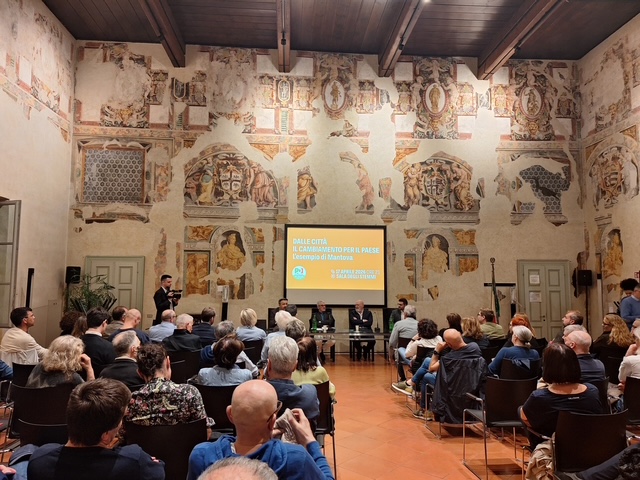 MANTOVA – Sala degli Stemmi gremita ieri sera per l’intervento di Stefano Bonaccini, europarlamentare e Presidente del Partito Democratico, all’evento dal titolo “Dalle città il cambiamento per il Paese. L’esempio di Mantova”.