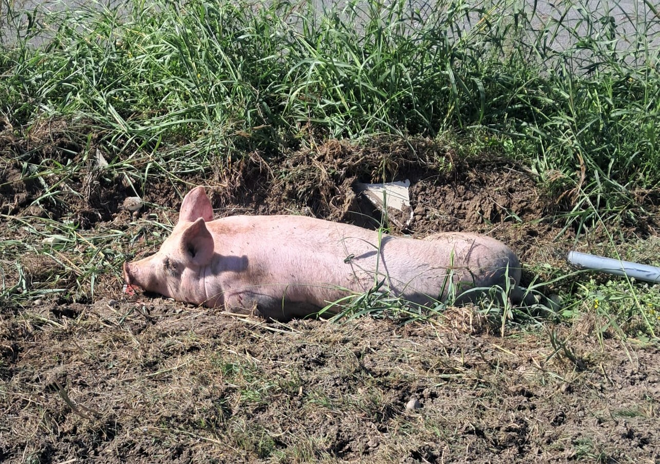 Nell’impatto, un suino di oltre 200 kg è rimasto ferito e intrappolato nel fossato, mentre una quarantina di animali si è dispersa nei dintorni, rendendo necessario un intervento tempestivo.