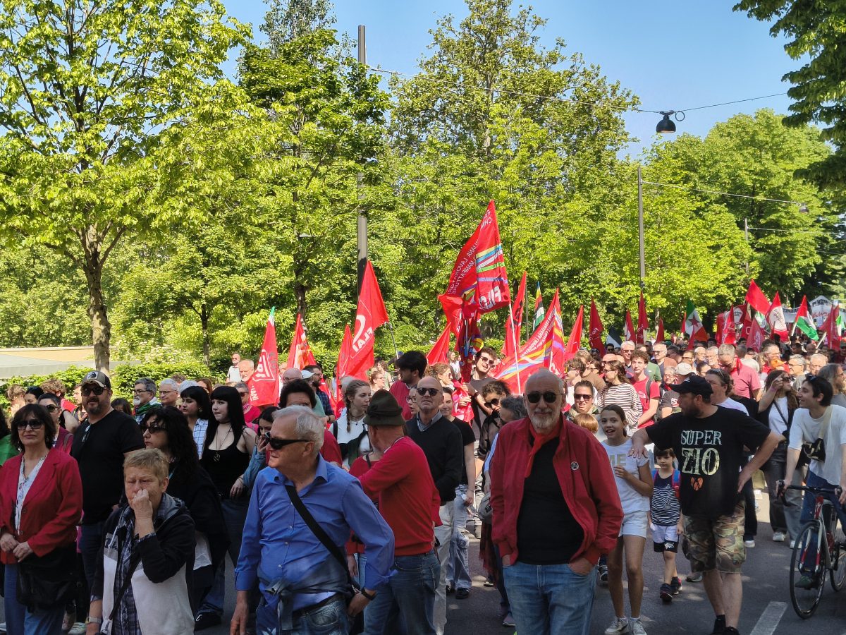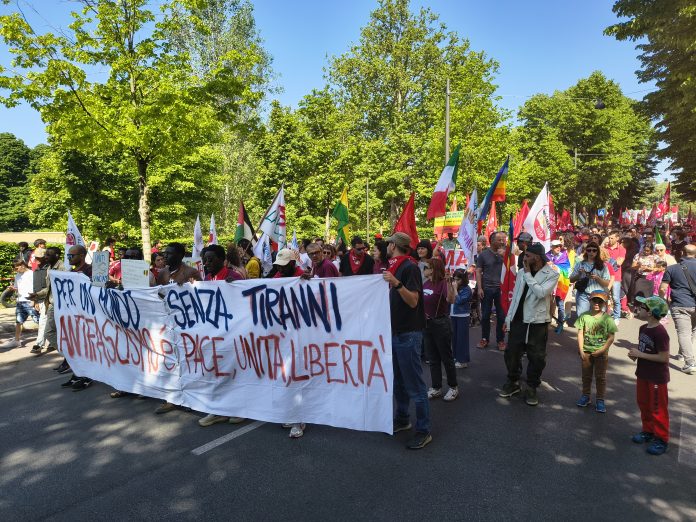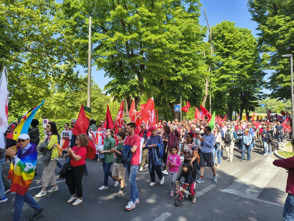 Il lunghissimo fiume di persone riunitesi sotto l’egida di Cgil, Arci e delle varie associazioni antifasciste, si costituisce dunque come vera e propria prosecuzione delle cerimonie del 25 Aprile presso il monumento ai Caduti di Viale Piave, per riconnettersi poi con il tradizionale percorso verso il centro cittadino. Tantissime le persone presenti: militanti, esponenti politici, ma anche molte famiglie, moltissimi giovani che si riconoscono nei valori dell’antifascismo.