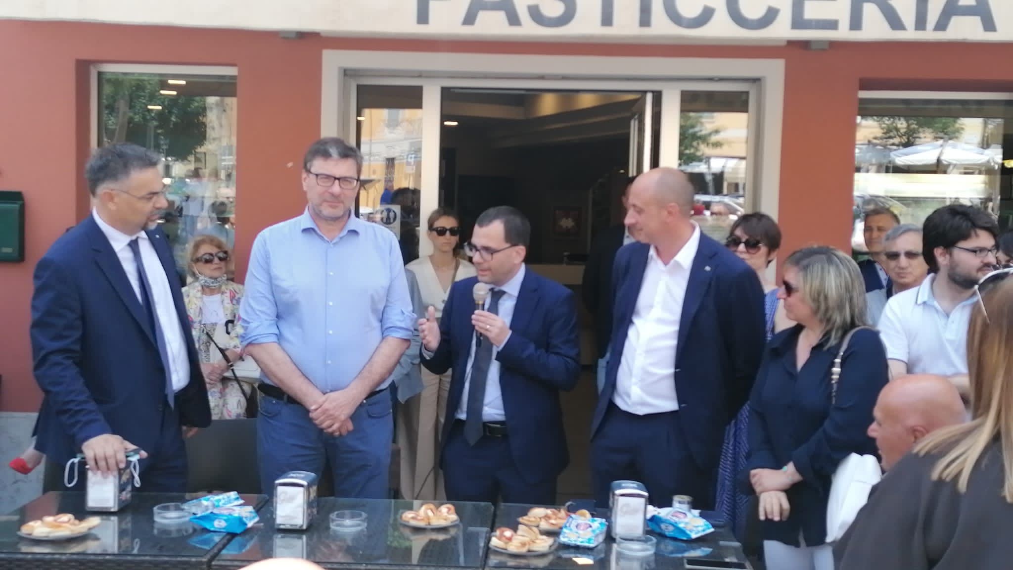 Accolto in Piazza San Luigi dallo stesso Volpi, dal suo vice nonchè deputato della Lega Andrea Dara, dal consigliere regionale Alessandra Cappellari e dai responsabili della sezione locale del partito, Giorgetti è intervenuto durante l’incontro organizzato alla pasticceria Gobbi, introdotto da Volpi che ha anticipato alcuni temi ripresi poi dallo stesso ministro.