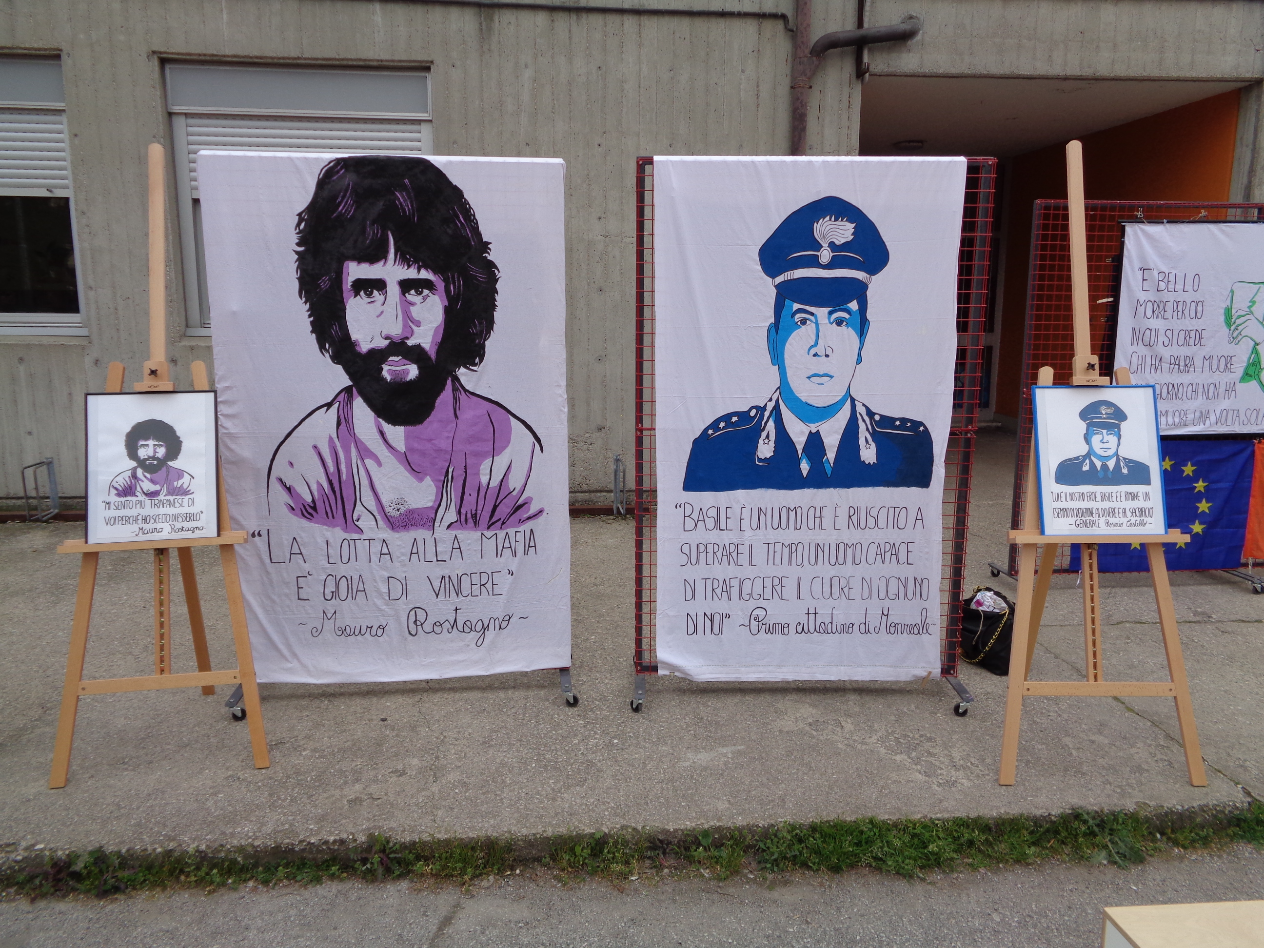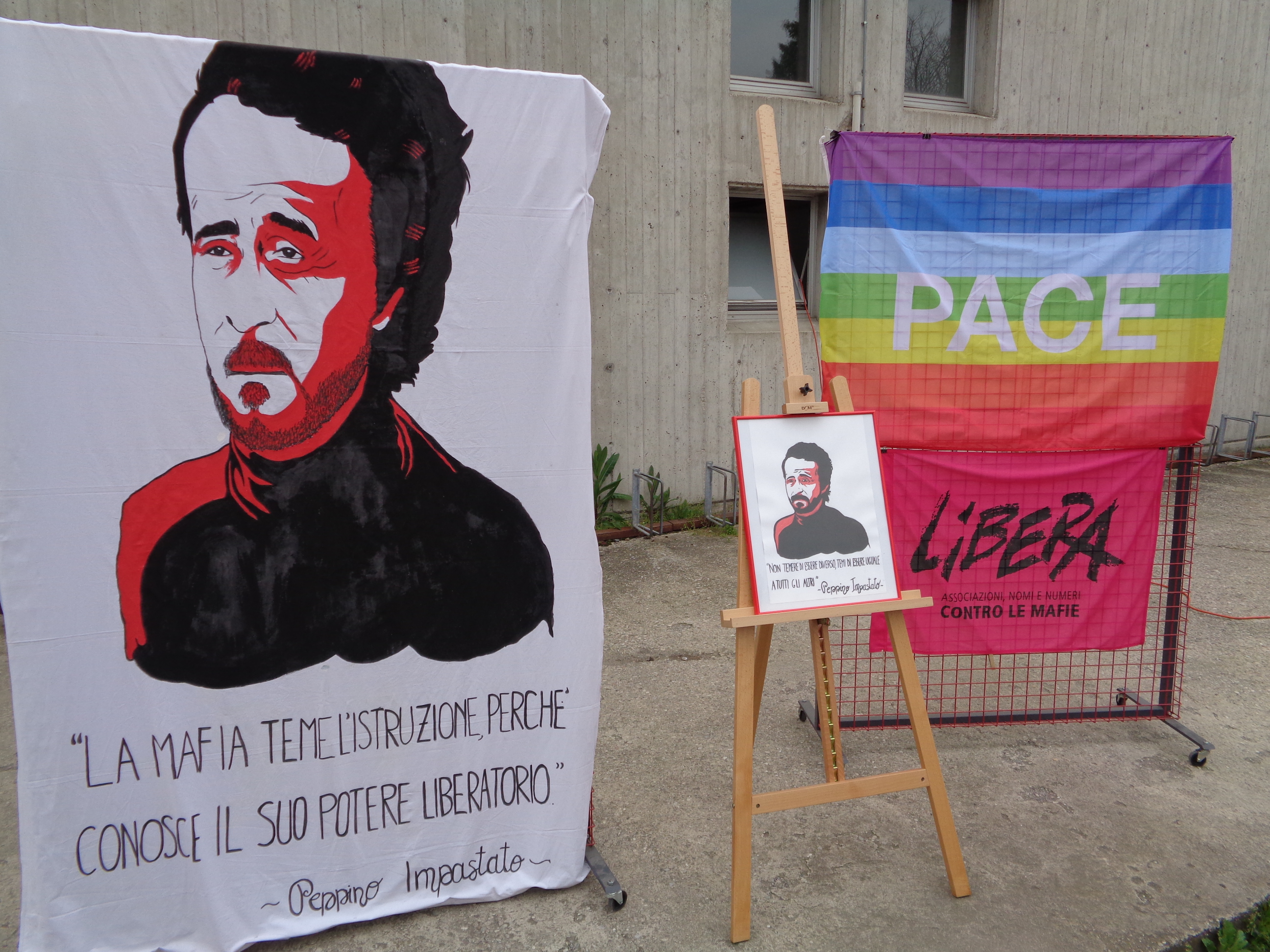 In occasione della XXX Giornata Nazionale della Memoria e dell’Impegno in ricordo delle vittime delle mafie, nel cortile della scuola “B. Croce” è stato allestito un palco con immagini di cinque vittime emblematiche: il maresciallo Emanuele Basile, il giornalista Mauro Rostagno, i giudici Giovanni Falcone e Paolo Borsellino, e Peppino Impastato.