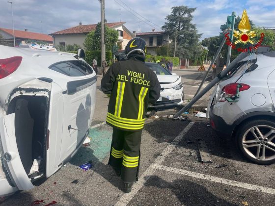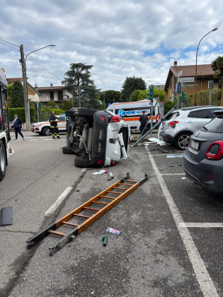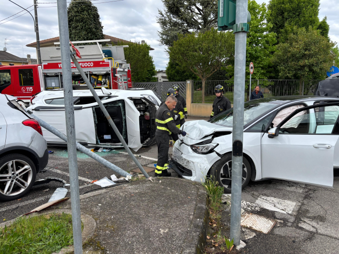 GUIDIZZOLO – Grave incidente questa mattina poco dopo le ore 9 all’incrocio tra viale Europa e via Tomasina, a Guidizzolo. Per cause ancora al vaglio due auto si sono scontrate e una di queste si è ribaltata. Due le persone coinvolte e rimaste ferite: un uomo di 77 anni e una donna di 55 anni. Sul posto i Vigili del Fuoco di Castiglione delle Stiviere, intervenuti per estrarre la donna rimasta incastrta all’interno del veicolo ribaltato, l’elisoccorso proveniente da Brescia, l’auto medica da Mantova e due ambulanze di Soccorso Azzurro.