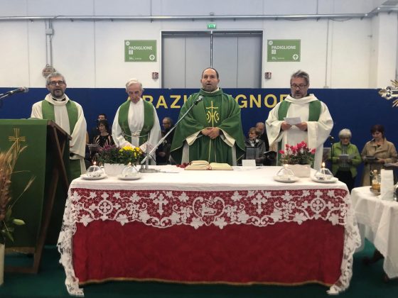 GONZAGA – Questa mattina nel Padiglione 1 della Fiera Millenaria si è volta la “Festa del Ringraziamento” delle parrocchie dell’Unità Pastorale Terre Matildiche con la celebrazione della Santa Messa concelebrata da don Sandro Barbieri, don Flavio Savasi, don Nicola Catarin insieme al parroco emerito don Valerio Canossa.