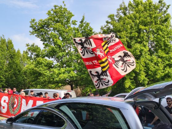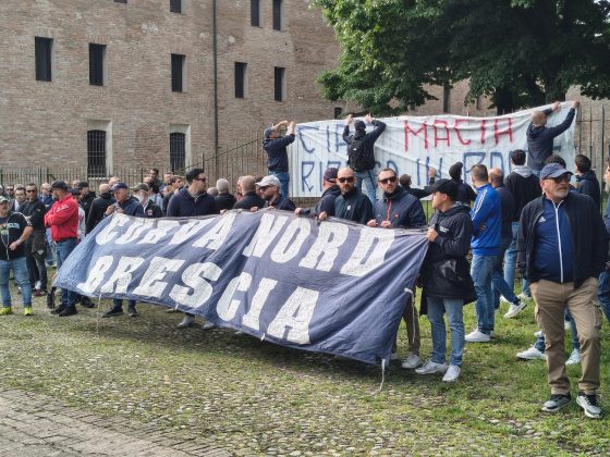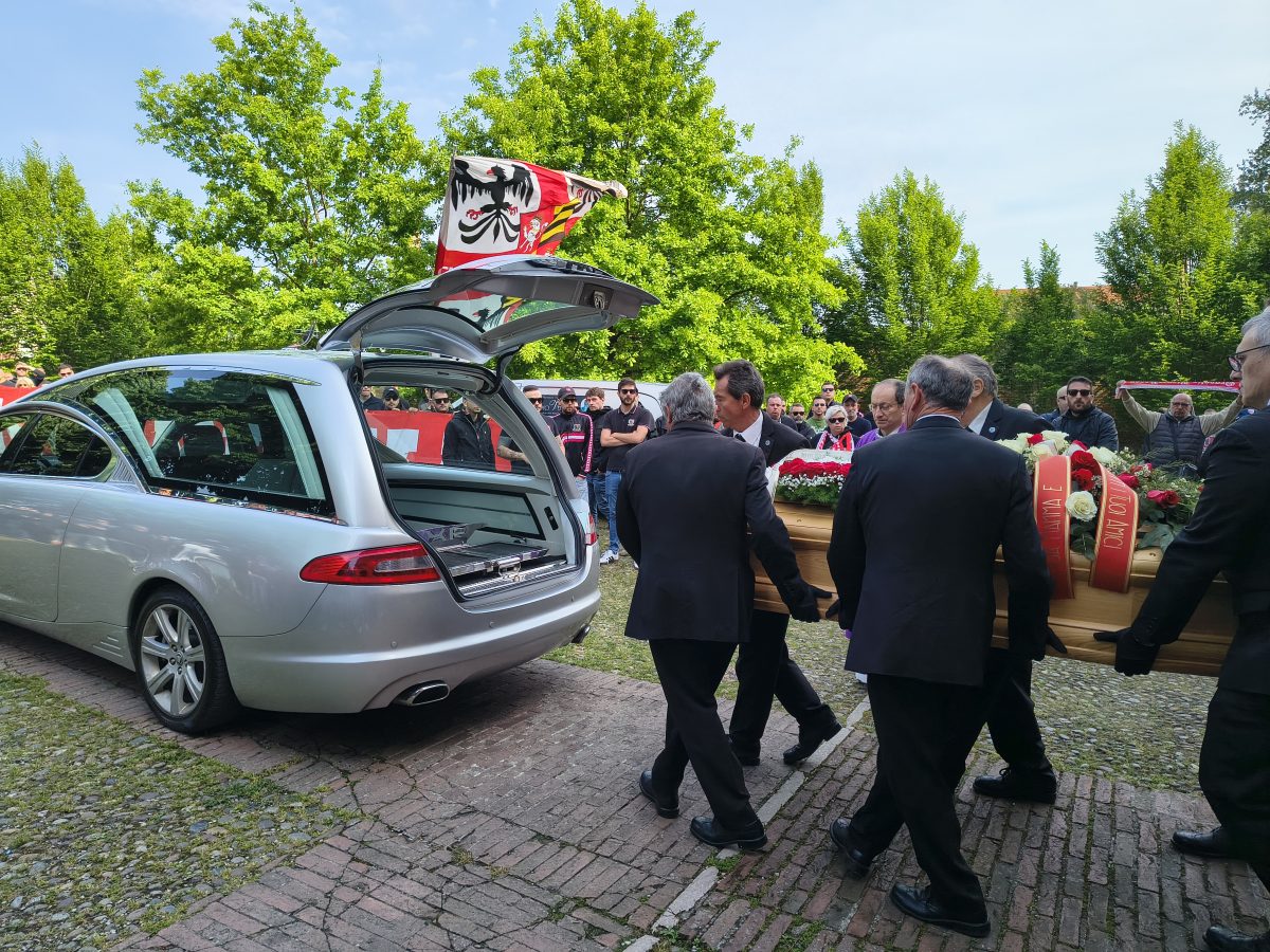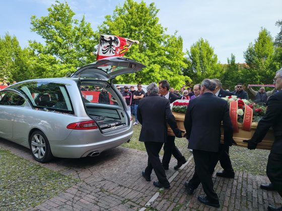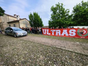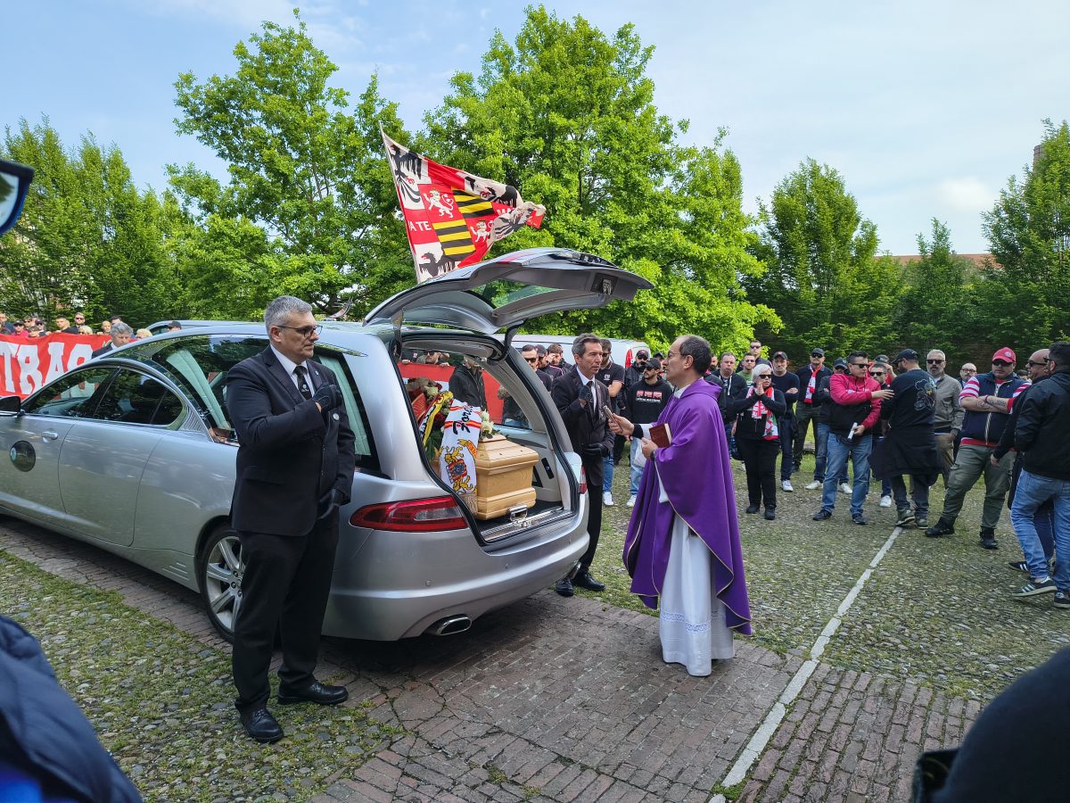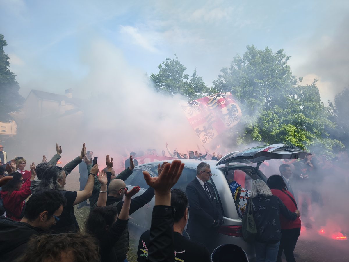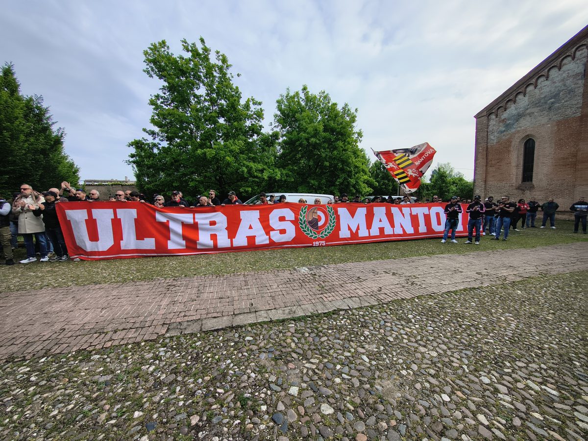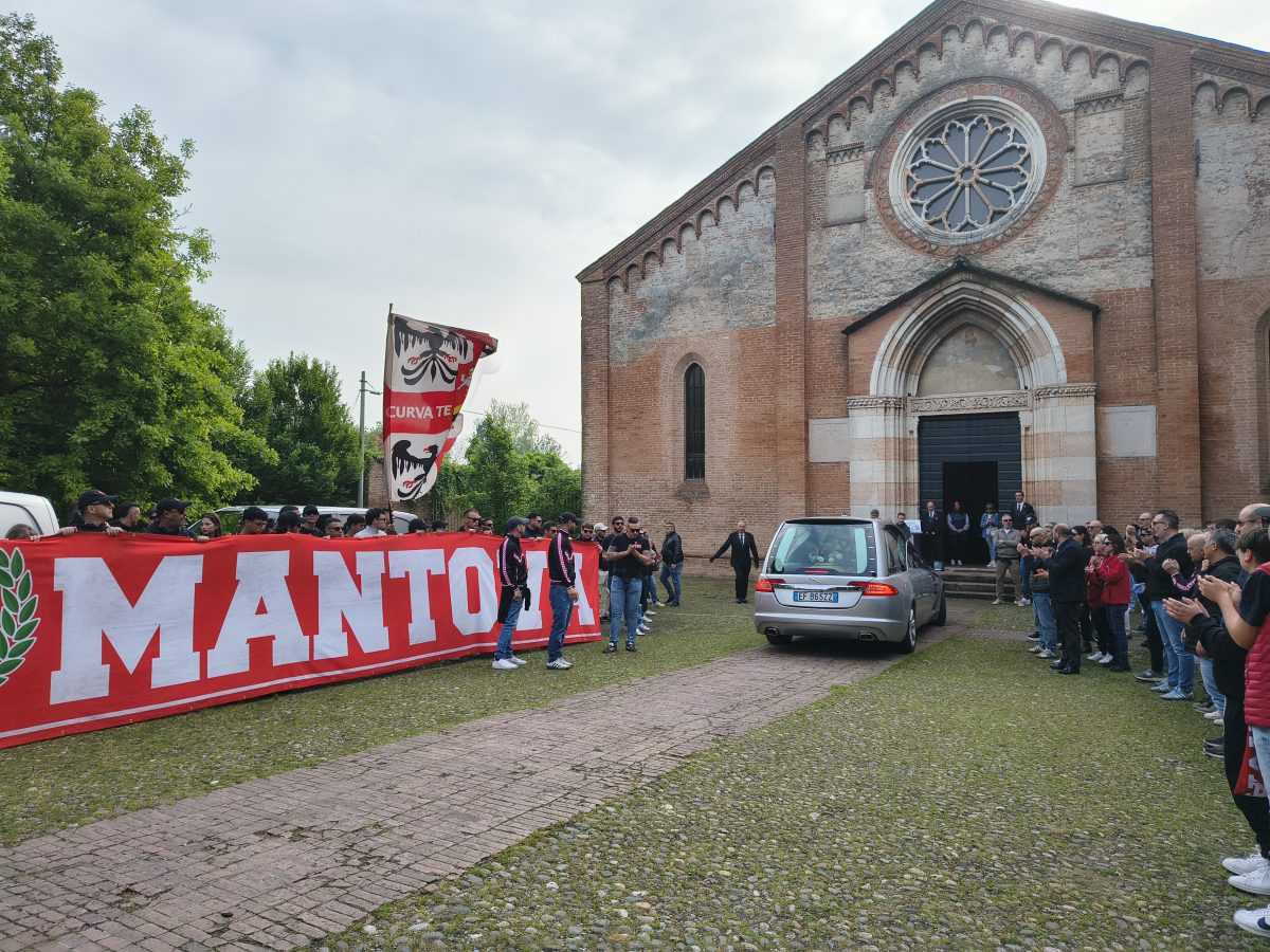 MANTOVA – Gli striscioni (“Un ultras non muore mai, vive nei ragazzi”, “Ciao Macia, riposa in pace”), le bandiere, i fumogeni, il coro che si alza verso il cielo assolato: “Macia è qua e canta con gli ultrà”. E poi le sciarpe, posate all’uscita del feretro dalla chiesa del Gradaro sopra quelle del Mantova, della Curva Te: del Brescia, del Cesena, ma anche del Catanzaro e del Lens, le cui delegazioni si sono ritrovate in città per dare l’ultimo saluto a un amico, a un fratello.