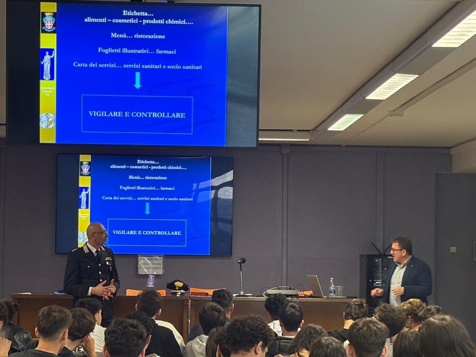 Dopo un’introduzione sul valore del dialogo tra scuola e Istituzioni, gli studenti hanno approfondito il ruolo dell’Arma nella tutela della legalità, con particolare attenzione al lavoro dei Nas, reparti specializzati nei controlli sanitari e agroalimentari svolti in collaborazione con il Ministero della Salute.