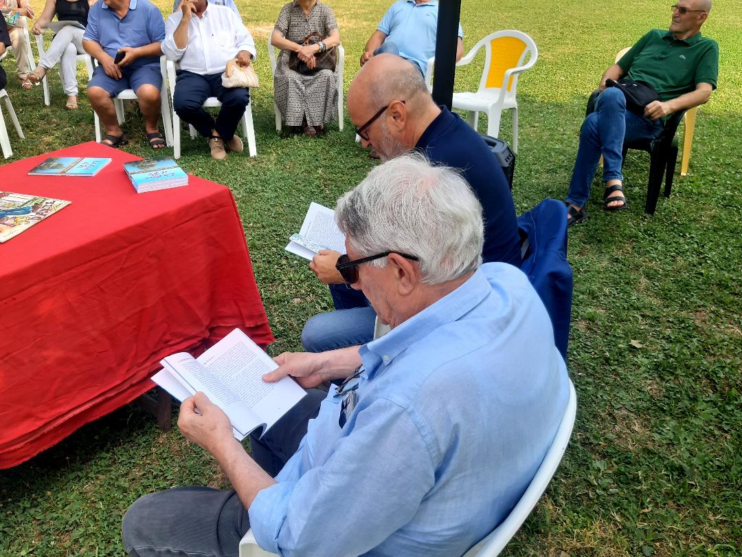 Nel suggestivo scenario del parco Andreani-Panicali, dove le ombre delle piante danzavano, trafitte da qualche raggio di sole che invitava i presenti a cercare riparo, Mazza ha lasciato che la sua anima di menestrello prendesse il sopravvento. Non parole, ma note e versi hanno riempito l’aria, con l’esecuzione di alcune delle canzoni contenute nel libro: l’intramontabile “Munticiana”, la malinconica “La Iside”, la struggente “Am ciami Po” e l’omaggio a “Milcar ad Tursela”. Ogni melodia, ogni parola in dialetto, era un ponte gettato verso il passato, un sussurro di storie antiche che ancora vivono.
