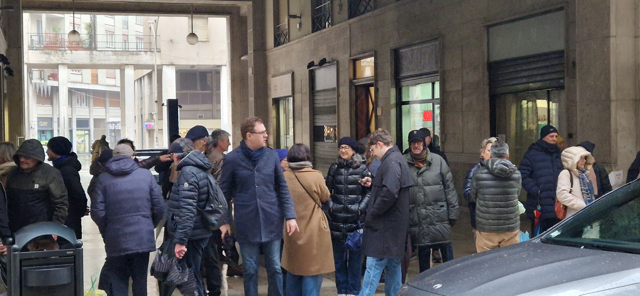 Uno spazio definito un “social point”, pensato come luogo di confronto e condivisione di idee per il futuro di Mantova. Numerosa la partecipazione all’inaugurazione: all’interno del locale era quasi impossibile muoversi e in molti hanno atteso all’esterno l’arrivo del candidato. Murari ha raggiunto più volte anche i portici della galleria Ferri, dove tante persone si sono radunate per ripararsi dalla pioggia battente, senza rinunciare a manifestare la propria vicinanza.