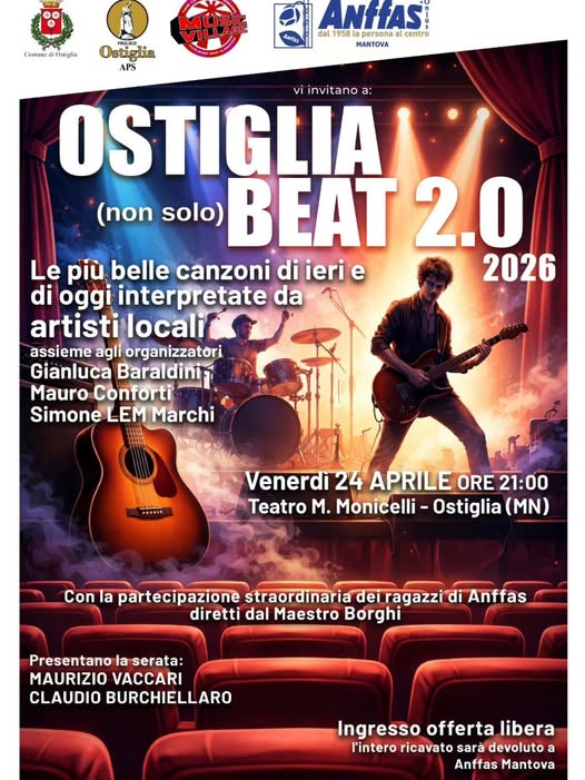 OSTIGLIA – Torna a Ostiglia uno degli appuntamenti più attesi della primavera culturale: venerdì 24 aprile alle ore 21 si svolgerà Ostiglia Beat 2.0 – Edizione 2026, una serata che unisce musica, comunità e solidarietà. L’evento, organizzato da Anffas Mantova, porterà sul palco del Teatro Monicelli le canzoni più amate di ieri e di oggi, reinterpretate da artisti locali insieme agli organizzatori. Questa mattina, in sala consiliare, alla conferenza stampa, erano presenti il sindaco Luciano Barberio, l’assessore alla cultura Francesca Carrara, il presidente della Pro Loco Maurizio Corsini oltre agli organizzatori Simone Marchi, Caren Baraldini, Mauro Conforti.