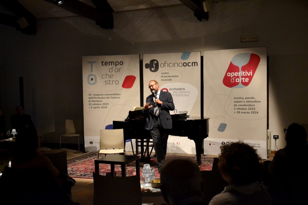 MANTOVA – Mercoledì 4 marzo alle ore 19, nella Sala delle Capriate, tornano gli Aperitivi d’arte di Oficina Ocm, eventi che uniscono cibo e cultura, mettendo al centro la musica ma esplorando tutte le arti e favorendo l’interazione tra artisti e pubblico. L’appuntamento, dal titolo “Prima la musica poi le parole”, propone un confronto tra Alberto Mattioli, scrittore e giornalista, e il musicista e compositore Orazio Sciortino sul tema dell’ossessione per la musica. L’attrazione verso le opere e i concerti, spiegano gli organizzatori, può diventare travolgente tanto per il pubblico quanto per chi la crea, in un dialogo che mostra come il linguaggio musicale si rinnovi continuamente al presente.