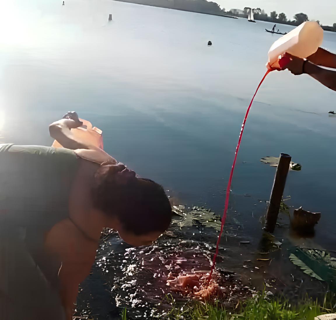 “Per simboleggiare l’incoerenza nel parlare di sostenibilità e rispetto delle risorse idriche a un evento pagato da Levoni – si legge in una nota di No Food No Science – le attiviste hanno versato nel Lago Superiore del succo di barbabietola, che rappresenta simbolicamente il sangue dei milioni di animali sfruttati e macellati dall’azienda mantovana ogni anno, davanti al locale La Zanzara, dove si teneva uno degli eventi di Interno Verde Acqua”.