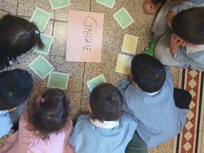 Negli stessi giorni, alla scuola dell’infanzia di Breda Cisoni il percorso si è concentrato su una parola semplice e universale: “grazie”. I bambini l’hanno scritta, incorniciata e ripetuta in tante lingue diverse.