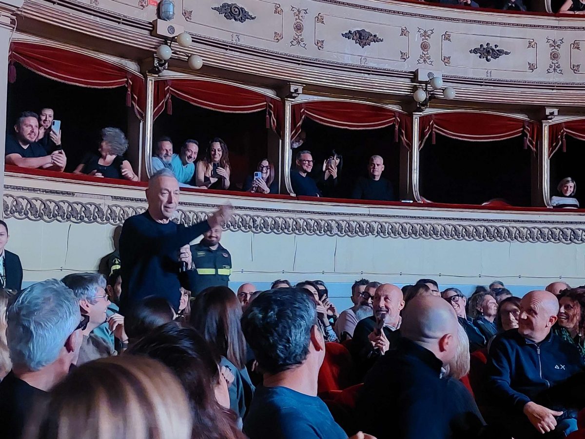 Nel mezzo, ovviamente, anche tantissima Radio Deejay e tanta musica di oggi e soprattutto di ieri, tra divagazioni e consigli. E poi gli incontri e gli aneddoti: Francesco De Gregori e gli 883, Lucio Dalla e Giorgio Prezioso, in un filo che si intreccia con tanti ricordi rivissuti in modo agrodolce, ma prediligendo sempre l’ironia. Alla fine, l’invito ad alzarsi in piedi e a ballare sulle note di “Buonanotte Fiorellino“, che quest’anno taglia il traguardo dei cinquant’anni dalla pubblicazione insieme all’album immortale in cui è contenuta: “Rimmel”. Il tempo è scaduto, Linus saluta il pubblico (“sapevo che sarebbe stata una bella serata, non ho mai conosciuto mantovani antipatici”) e promette: “sulla strada de ritorno apriamo la sbrisolona che abbiamo comprato oggi”.