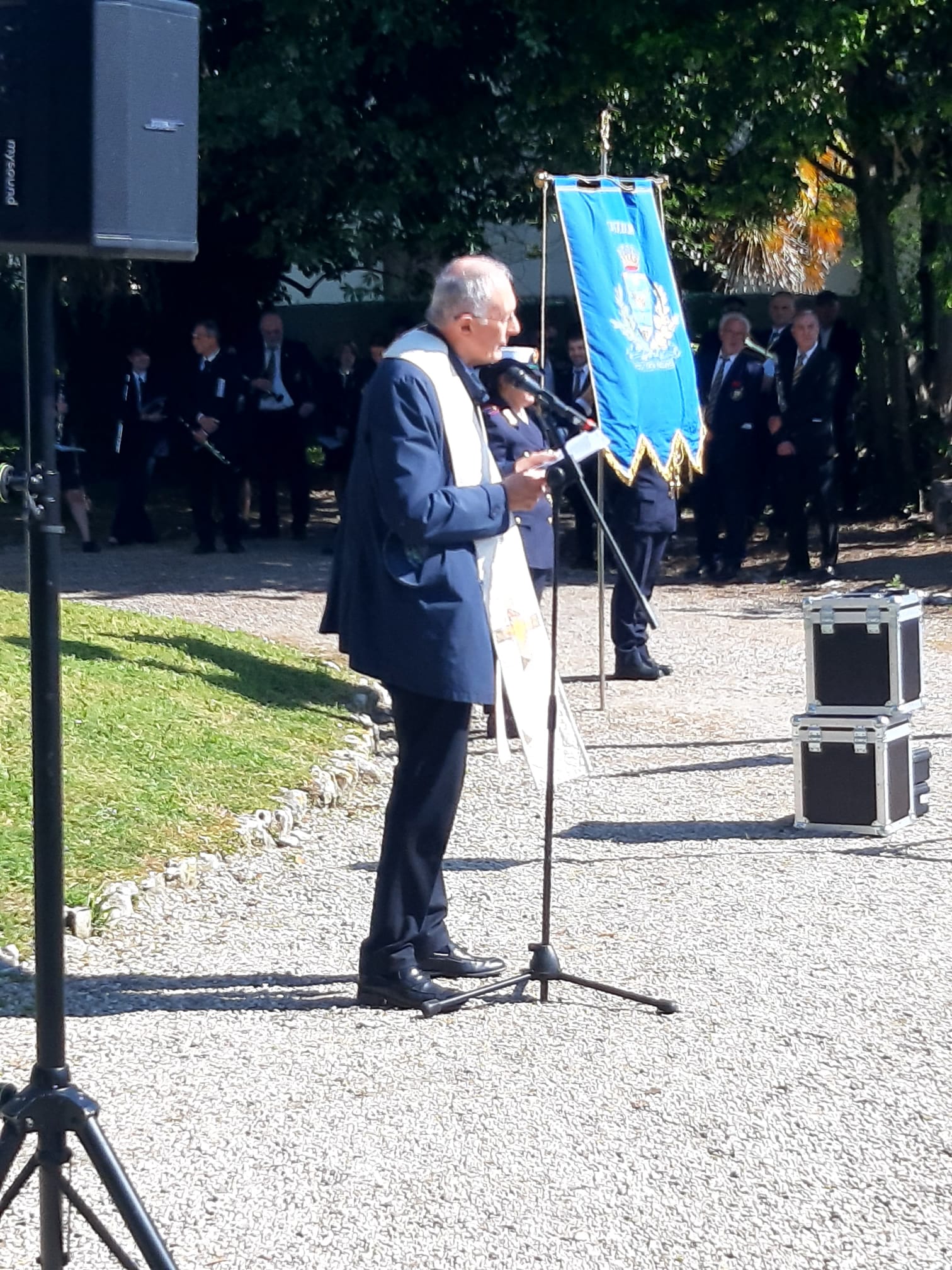 Il parroco dell’Immacolata, monsignor Paolo Gibelli, ha letto la Preghiera del Ribelle di Teresio Olivelli, alpino, partigiano, Medaglia d’oro al Valor Militare e della Resistenza. Un testo duro e profetico, che denuncia “il putridume in cui è immersa l’Italia, contro lo Stato che assorbe e ingoia ogni libertà di pensiero e di iniziativa; contro una cultura fradicia, contro gli ideali d’accatto, l’inerzia infingarda, l’affarismo profittatore ed equivoco”. Olivelli, ricordato anche per il suo “Non recriminiamo: ci ribelliamo”, fu arrestato a Milano e deportato da San Vittore a Fossoli, poi a Bolzano e infine a Flossenbürg. Morì il 17 gennaio 1945 a Hersbruck, continuando fino all’ultimo a sostenere i compagni di prigionia “implorando un aiuto, una parola di conforto, un’impossibile salvezza”. Monsignor Gibelli ha poi benedetto il Monumento ai Caduti, seguito dalla deposizione della corona d’alloro.
