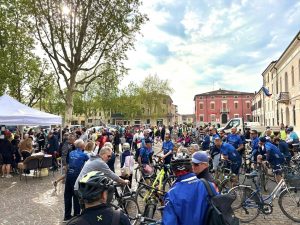 SUZZARA – “Suzzara in Bici” ha sfidato il maltempo e ha vinto. Circa 300 partecipanti, soprattutto famiglie con bambini, hanno preso parte, ieri, alla prima edizione del tour cicloturistico promosso dalla Pro Loco “Città di Suzzara”, pensato per valorizzare paesaggi, tradizioni e comunità delle frazioni suzzaresi. Il percorso ha toccato Riva di Suzzara, Gonzagone, Tabellano, Sailetto, San Prospero e Brusatasso, con tappe animate da ristori, visite guidate e attività per tutte le età. Molto numerosa anche la presenza dei “Ciclisti Suzzaresi”, in sella con la nuova maglia dedicata ai 40 anni del gruppo.