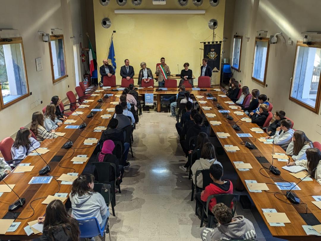Accompagnati dai docenti, i ragazzi sono stati accolti in Sala Consiliare dal Sindaco e dalla Giunta Comunale, che hanno dedicato loro un momento di saluto e confronto, illustrando il significato del ruolo istituzionale e l’importanza dell’impegno civico.
