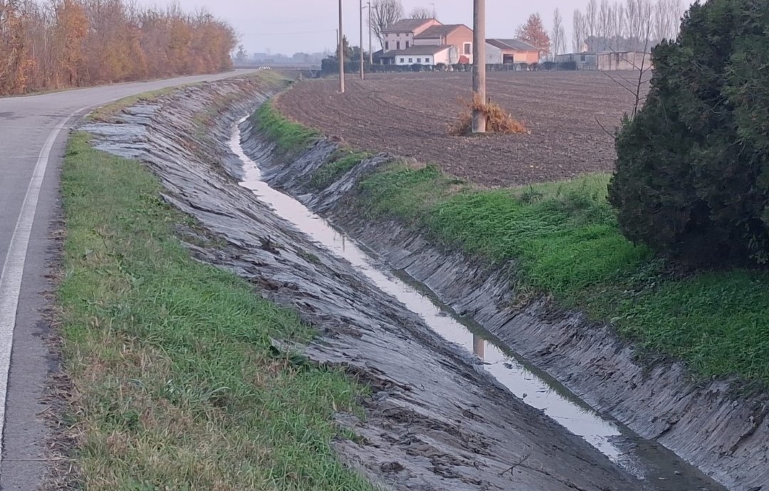 Il secondo intervento ha interessato il Dugale Vangadizza alto, in località Cantaboa, dove è stato completato l’espurgo, fondamentale per mantenere la piena efficienza idraulica del canale e prevenire rischi di allagamento.