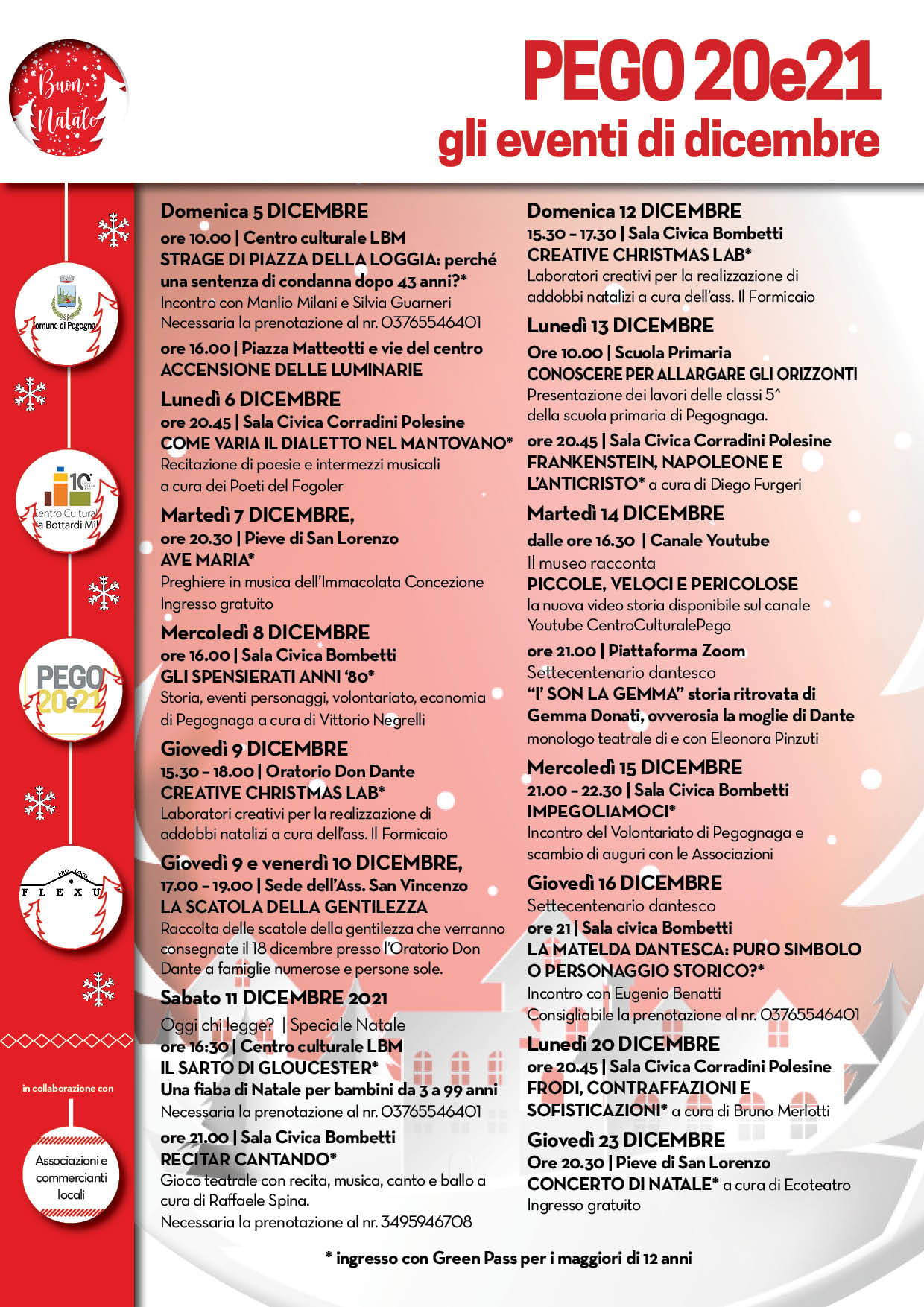 PEGOGNAGA Ce n’è davvero per tutti i gusti nelle iniziative proposte a Pegognaga nel mese di dicembre. Dibattiti, musica, laboratori creativi, recitazione di poesie dialettali, storia, libri, fiabe, teatro, e iniziative benefiche.