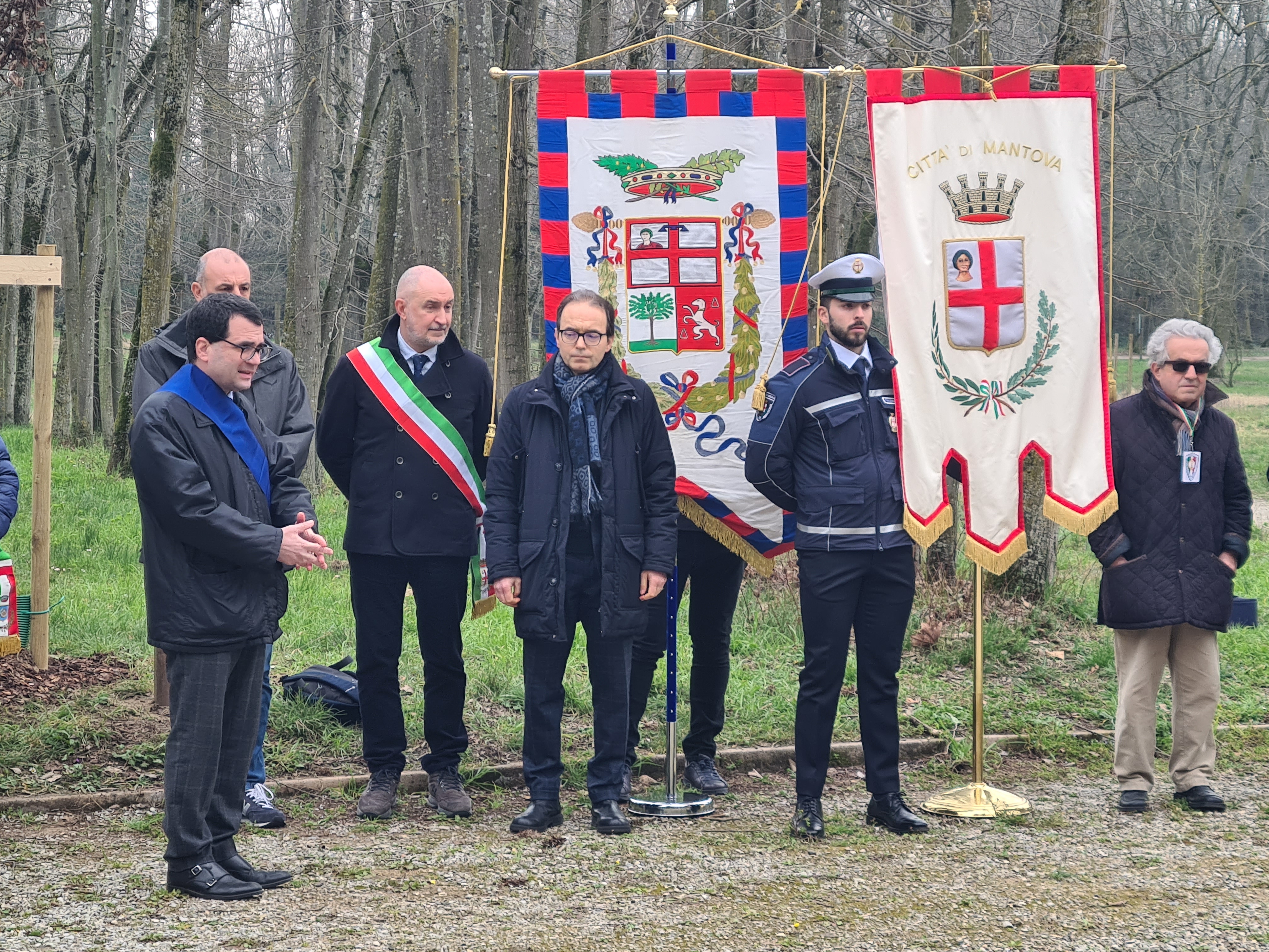 Per rendere omaggio al sacrifico di tutti coloro che hanno lottato, è stato piantato un albero a Bosco Virgiliano dietro al monumento di Virgilio, ben riconoscibile da una targhetta celebrativa. Presenti, oltre al presidente del Consiglio Comunale di Mantova, Massimo Allegretti, quello della Provincia Carlo Bottani, il vicario del prefetto Giorgio Spezzaferri e Aldo Norsa in rappresentanza della Comunità ebraica di Mantova e della Fondazione Franchetti. Alla cerimonia hanno preso parte altre autorità civili, militari e religiose locali, tra le quali i vicesindaci dei Comuni di Roncoferraro Davide Nicchio e di San Giacomo delle Segnate Auro Codifava, il consigliere comunale delegato del Comune di Rodigo Marisa Cantoni, il consigliere provinciale Mattia Geronimo Di Vito, Monsignor Giancarlo Manzoli della Diocesi di Mantova, i rappresentanti di varie associazioni del territorio, della Consulta provinciale degli studenti e alcuni allievi del Liceo scientifico Belfiore.