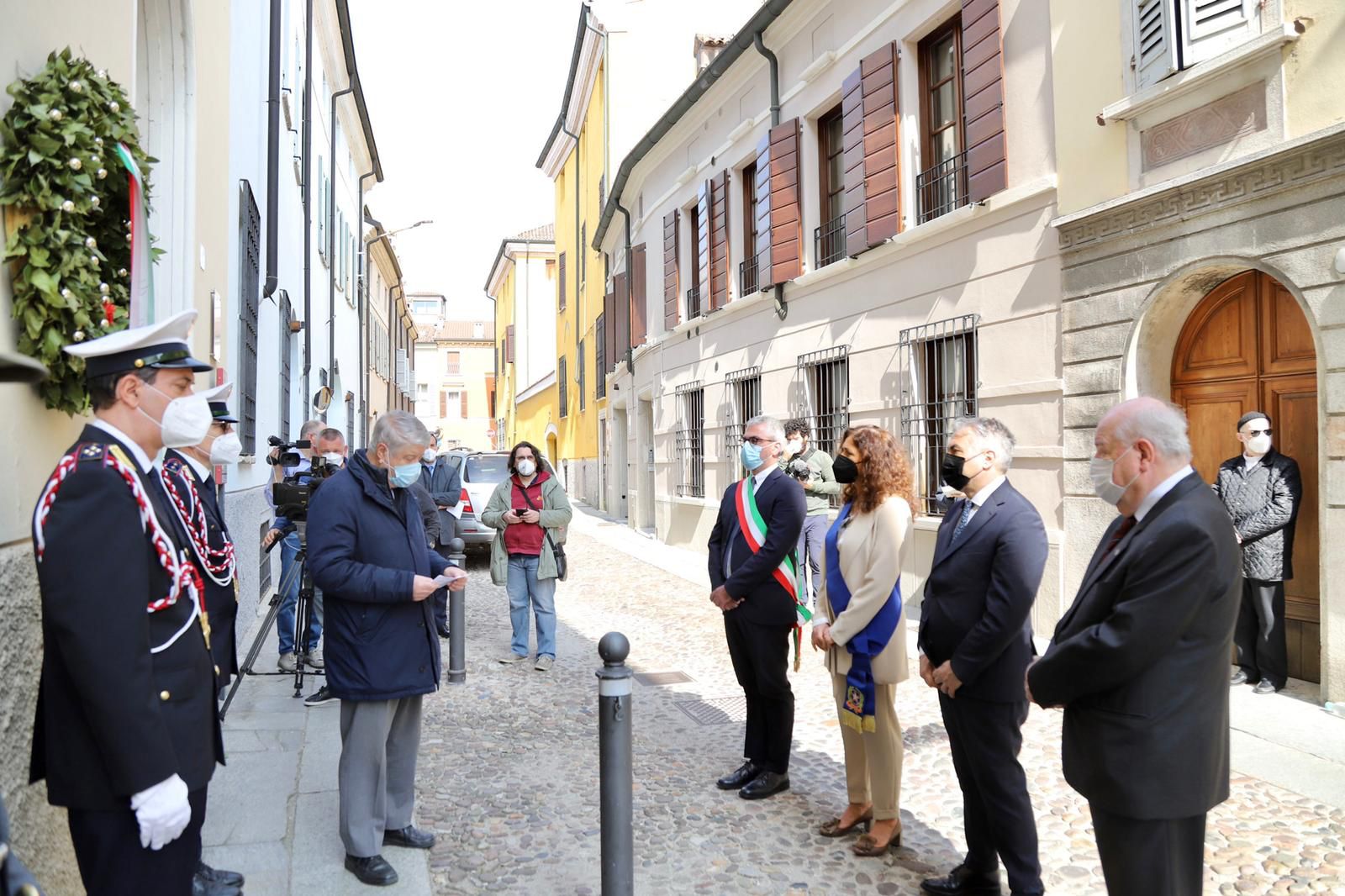 Infine, corona e Gonfalone del Comune di Mantova in via Govi davanti alla Sinagoga. Anche qui le autorità hanno fatto un momento di silenzio, rendendo omaggio ai deportati, chiuso con lo “Shalom” del presidente della Comunità ebraica mantovana Emanuele Colorni. Presenti anche due agenti in “alta uniforme” della Polizia Locale.