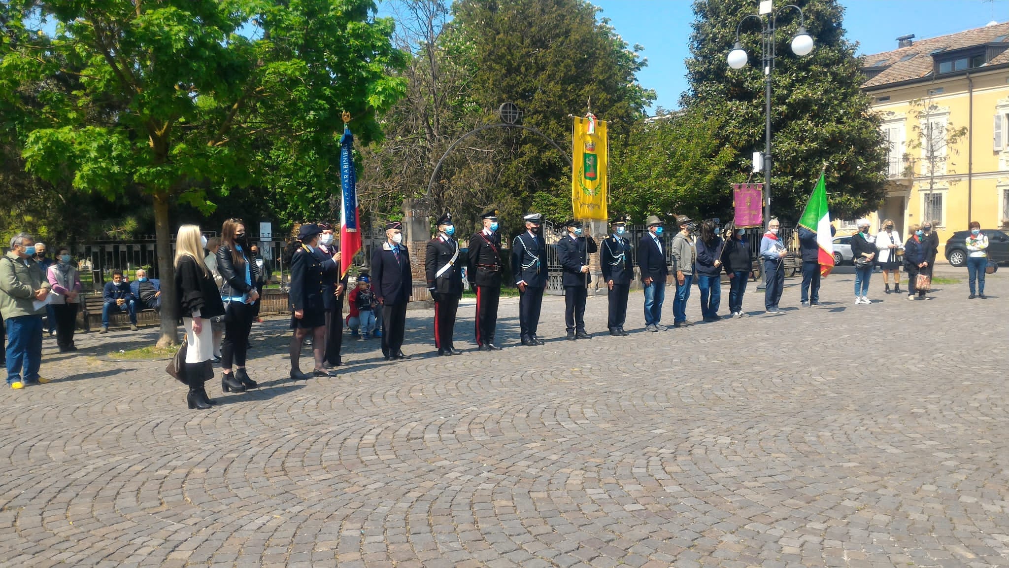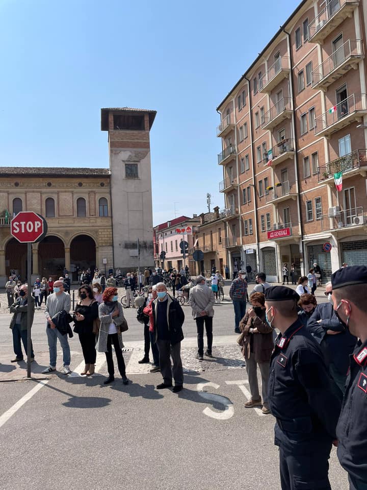 Nel rispetto delle normative Covid, 25 aprile per pochi intimi anche a Viadana. A partecipare alle celebrazioni davanti ai monumenti della resistenza, i rappresentanti di maggioranza, guidata dal sindaco Nicola Cavatorta e da quelli di minoranza del Consglio Comunale. Presenti anche una rappresentanza dei Carabinieri e degli Alpini che hanno suonato il silenzio.AA bo