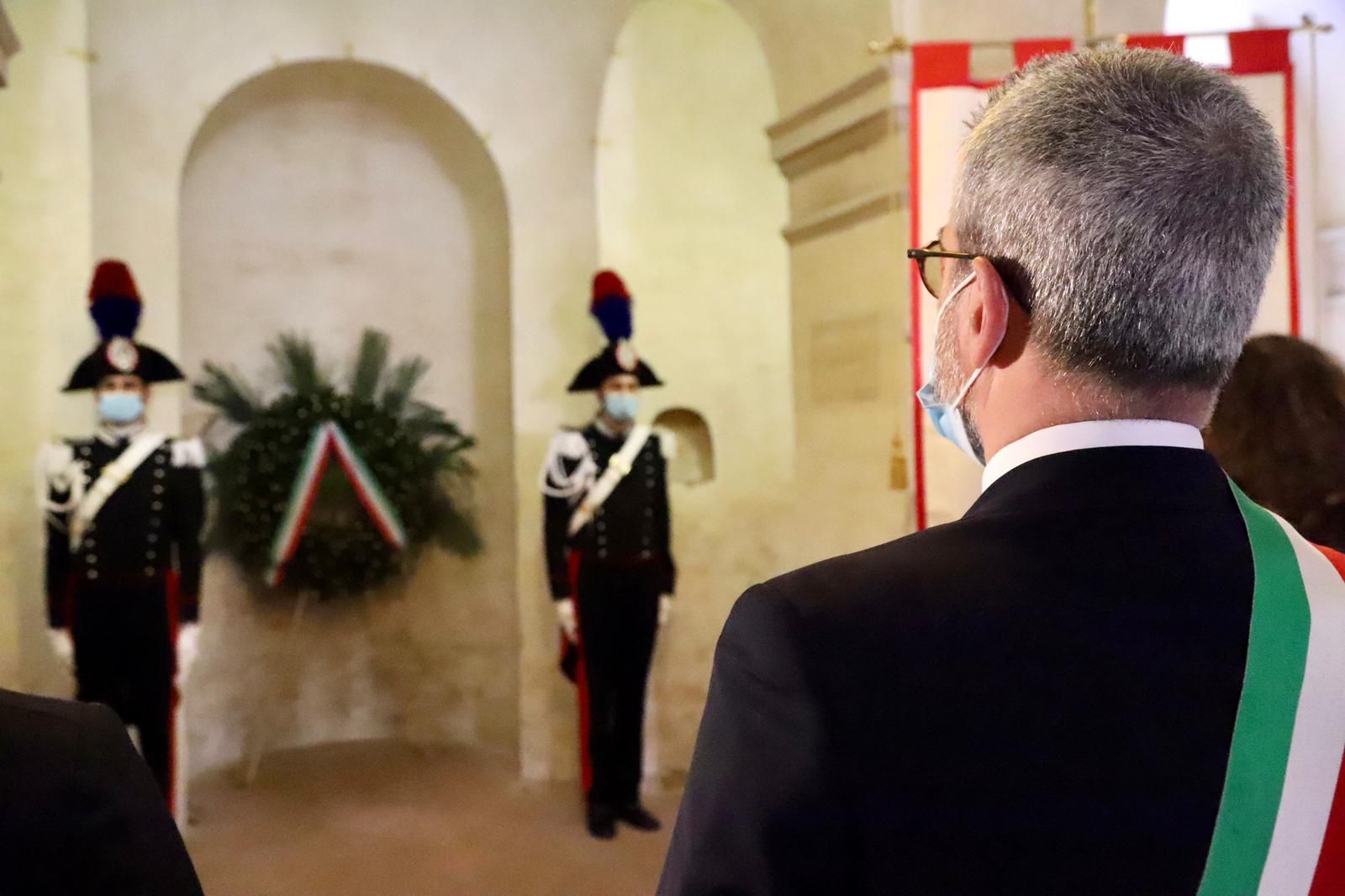 A seguire, la tappa al Famedio, con la deposizione della corona nella cripta, trasportata da due Carabinieri del Comando provinciale, sempre alla presenza delle autorità locali.