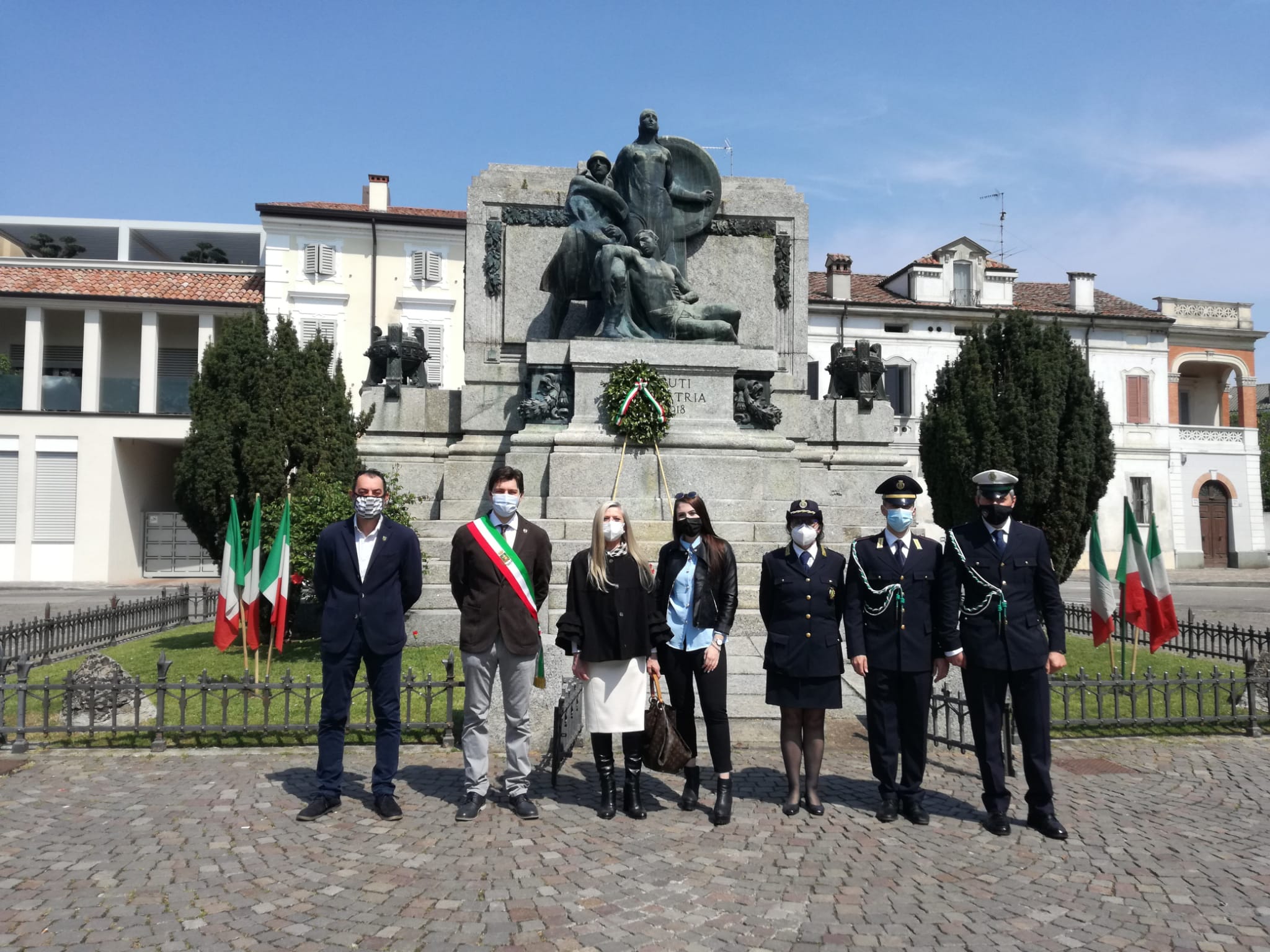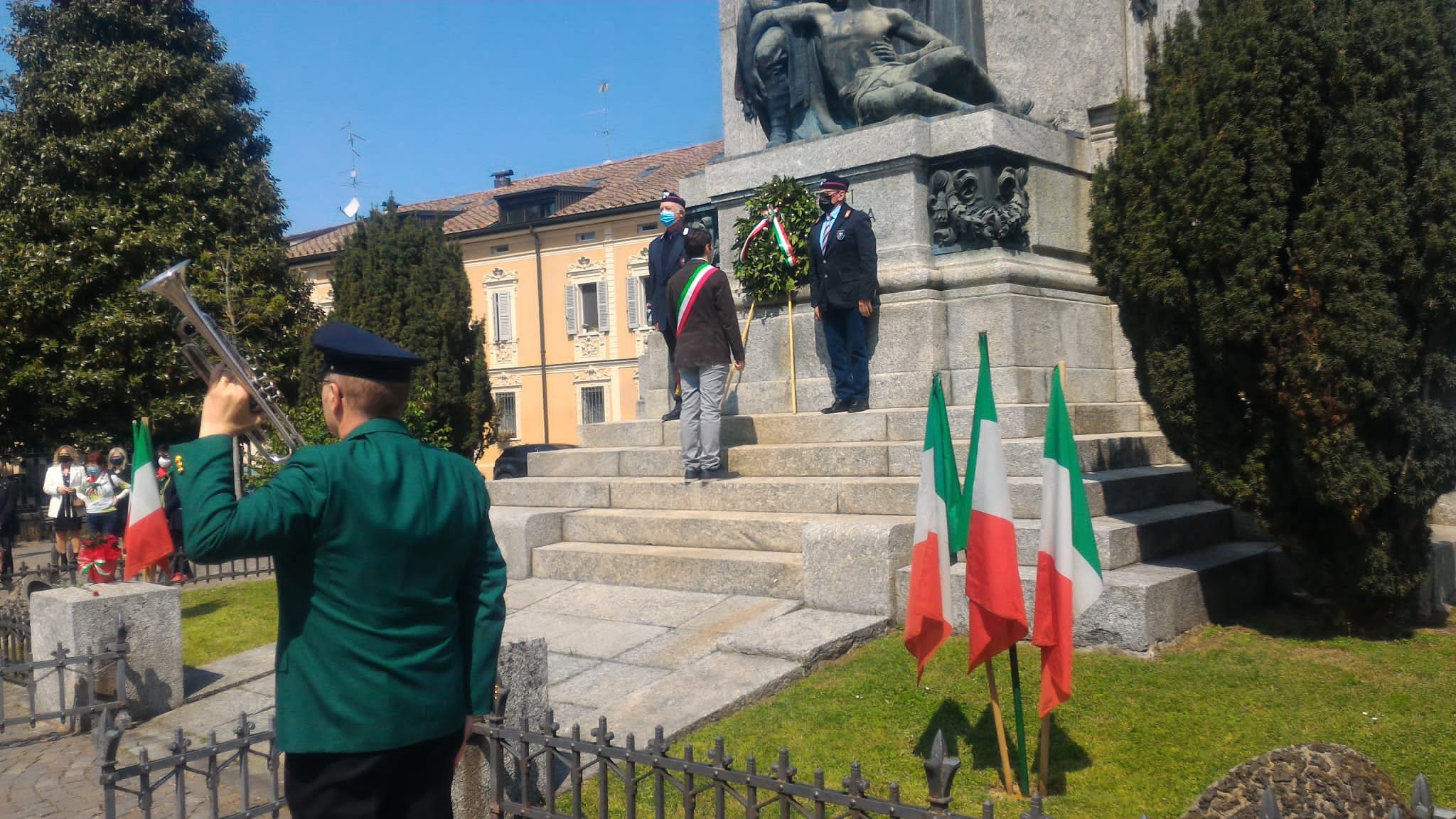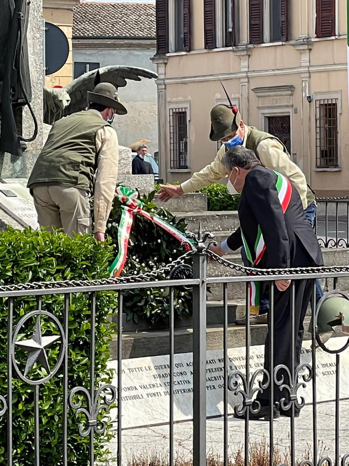 A Bozzolo, accompagnato da due Alpini, il sindaco Giuseppe Torchio ha posato una corona d’alloro davanti al monumento dei caduti. Spazio anche alla banda che ha suonato l’inno di Mameli. L’evento non era aperto al pubblico, ma in piazza si è radunata una buona rappresentanza di cittadini che da lontano e a distanza ha assistito all’evento.