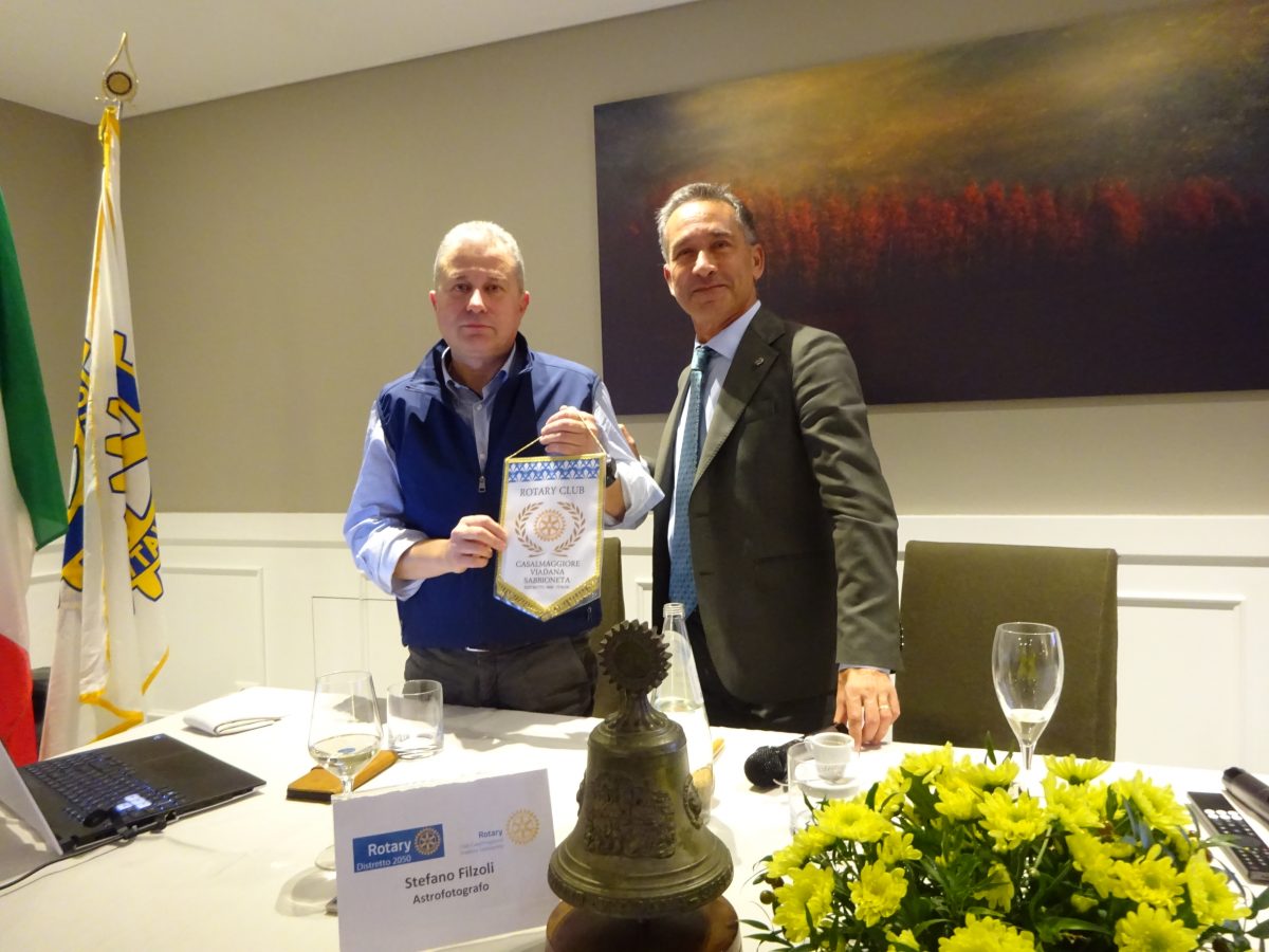 Filzoli ha raccontato di sé e della sua “fissa” per le stelle nella serata conviviale del Rotary Club Casalmaggiore Viadana Sabbioneta di lunedì 20 ottobre: dettagli tecnici, problemi da affrontare, storia della astrofisica e soprattutto una splendida carrellata di iinquadrature, elaborate da lui nel corso degli ultimi anni, capaci di emozionare tanto sono dettagliate, eteree, fatate: l’incanto del cielo, della Via Lattea, di un particolare di Giove, degli anelli di Saturno ripresi in condizioni diverse che tolgono il fiato.