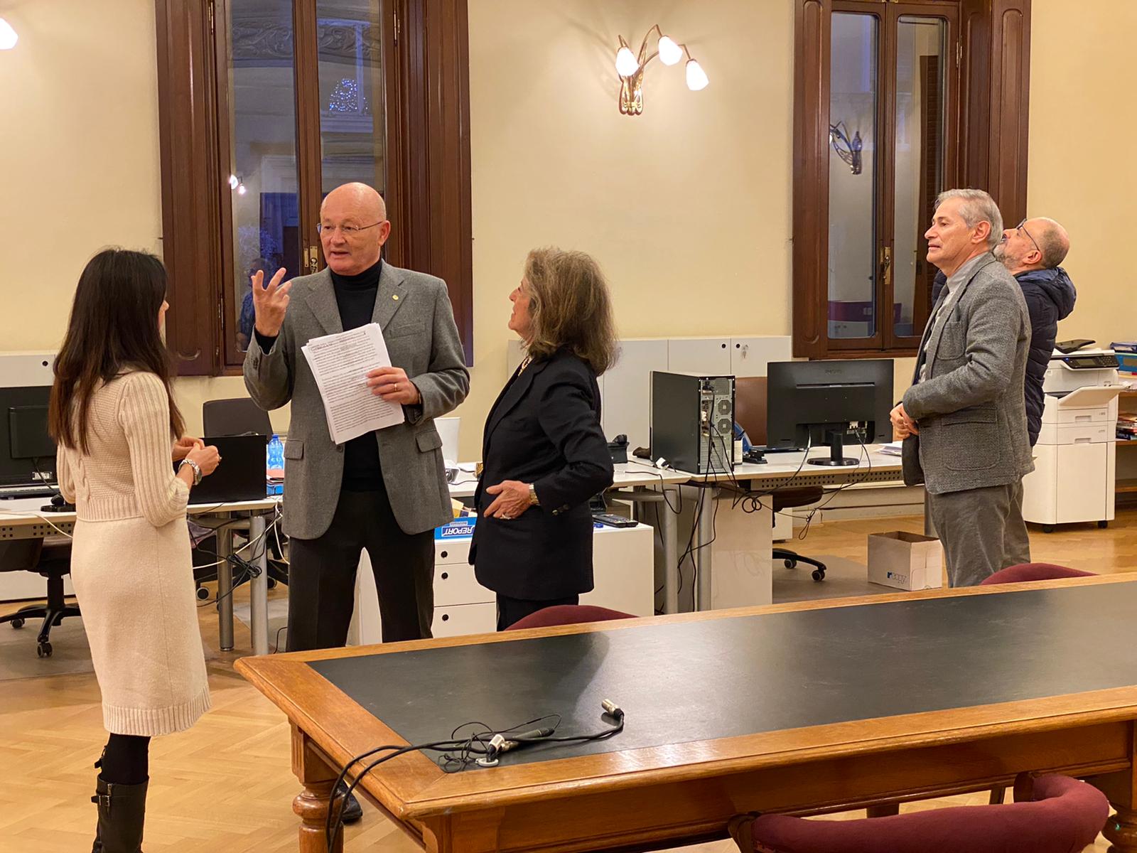 L’Amministrazione si rende disponibile – conclude la presidente Giorgi – a visite della sala per gruppi organizzati di turisti che volessero apprezzare l’opera e la stessa palazzina, al cui interno si trova una scala a giorno in marmo botticino con balaustra in ferro battuto di rara eleganza, oltre ad una scenografica biblioteca fornita di boiserie in legno con parquet galleggiante a spina pesce e soffittatura a cassettoni.